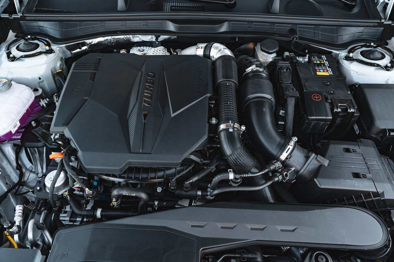 2.0 가솔린 터보 하이브리드는 e-라이드와 e-핸들링 기능으로 구분되는 e-모션 드라이브 시스템을 탑재했다. 또한 하이브리드 전용 콘텐츠와 배터리 리셋 버튼, 회생제동 단계를 조절할 수 있는 회생제동 컨트롤 패들시프트를 지원한다.