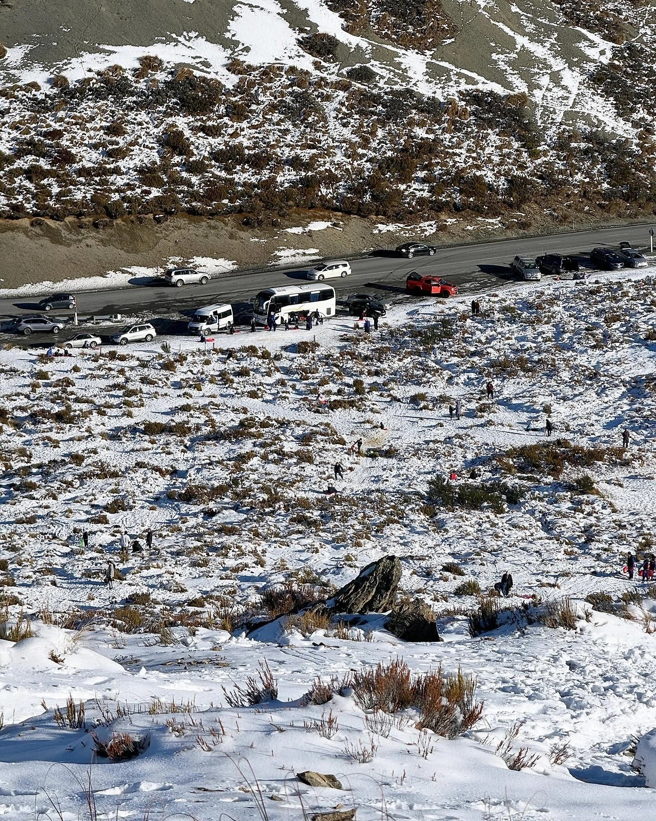 주차장은 거의 다가왔고 이른 아침때와는 사뭇 다른 여러 대의 차들이 줄지어 주차되어 있었다. 겨울이어도 눈 구경하기란 쉽지 않아 지나치다 들렀던지 아니면 일부러 이곳까지 온 게 맞을 거라는 생각이 들었다. 예전에 어린 딸들을 데리고 눈썰매를 태워 주겠다고 시간을 내어 왔던 재밌는 옛 추억의 경험이 있기 때문이다. 거의 가까이 다가가보니 역시 나의 생각이 들어맞았다. 많은 가족들은 저마다 눈썰매들을 타느라 정신없는 시간을 보내고 있었다. 여기저기서 깔깔대고 비명을 지르며 신나게 겨울 놀이에 흠뻑 빠져있었다. 뉴질랜드는 어드벤처 천국임이 틀림없다.