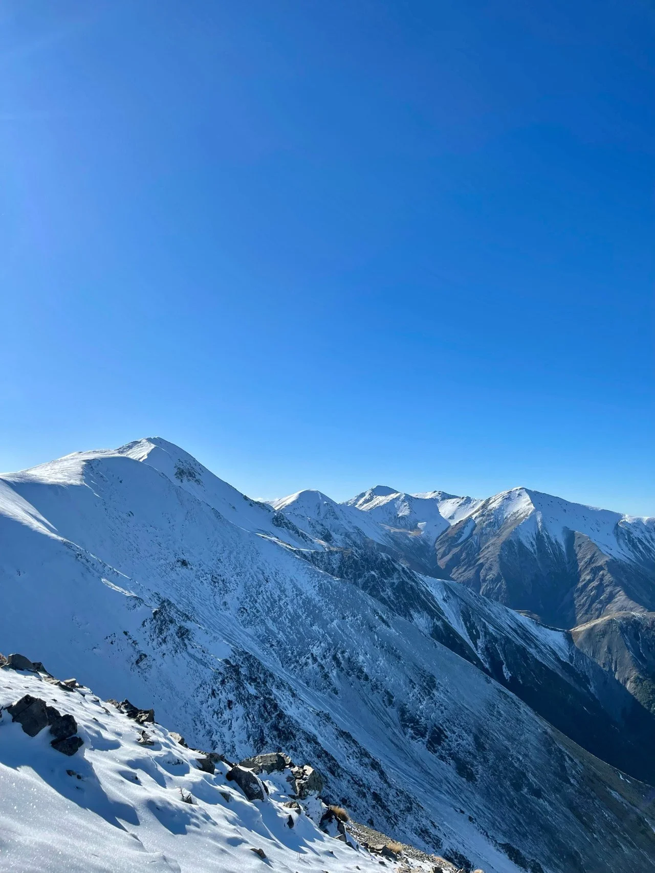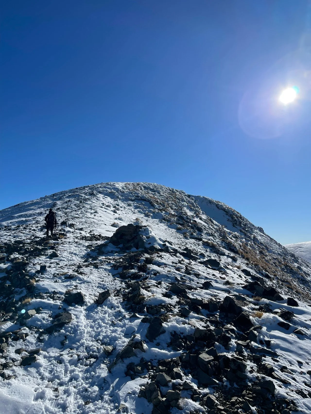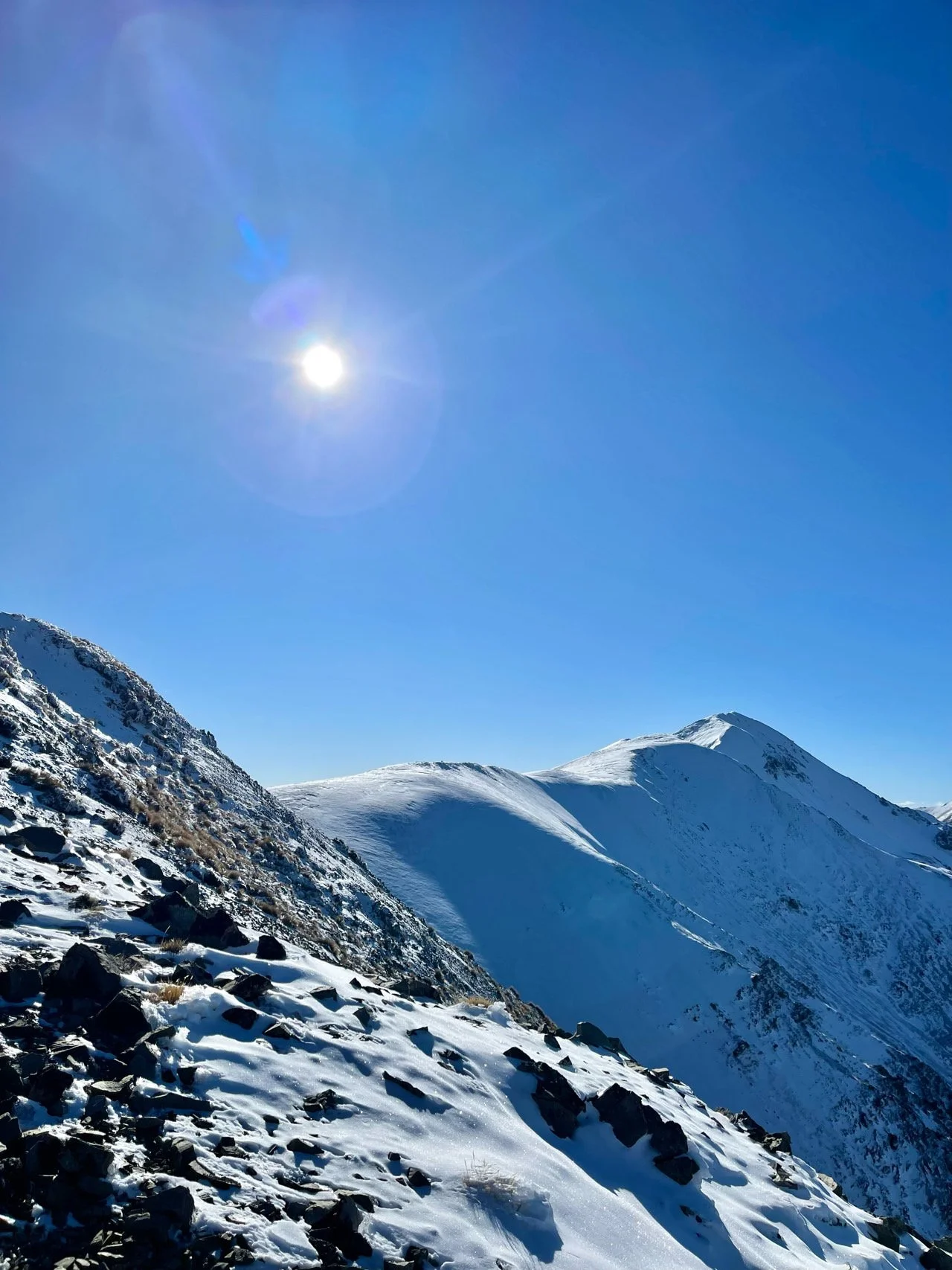 힘겹게 올라온 육체의 고난 끝에 맛보는 쾌적한 피로는 눈덮인 거대한 산들이 반겨주는 위로에 절로 사르르 녹기 시작했다. 파노라마로 펼쳐진 Foggy Peak Craigieburn 산맥과 여러 봉우리들이 우뚝 솟아난 웅장한 자연 앞에 숭고해지던 때였다. 조금만 더 가면 닿을 듯 바로 코앞에서 기다리는 캐슬 힐 피크를 바라보니 마음이 조금은 애타도록 조급해졌지만 욕심을 내려놓기로 한다. 멈춰야 할 때를 알고 또 가야할 때를 알아야 하는 법, 우선은 허기진 배를 채우기 위해 점심을 먹기로 하고 잠시 쉬었다 1시까지만 걷다 되돌아오기로 결정을 했다. 겨울산은 해가 일찍 떨어지기 때문에 하산 시간이 4시 정도는 되어야 안전하기 때문이다.