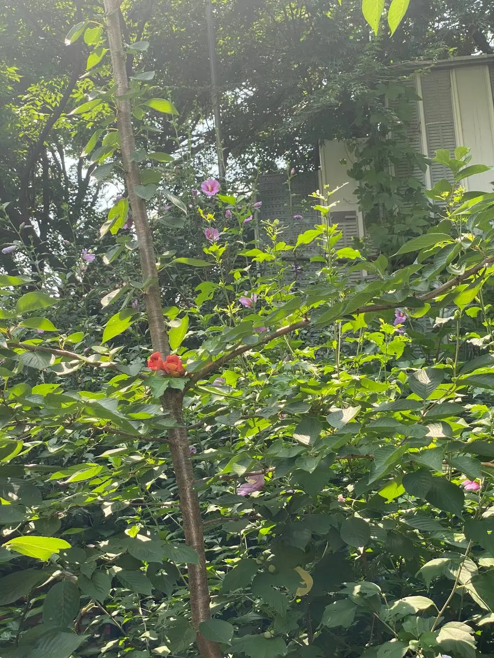 올해도 잎만 무성하고 마나보다 했는데 며칠 전 벚나무 가지 사이로 작은 능소화가 빼꼼히 보인다.