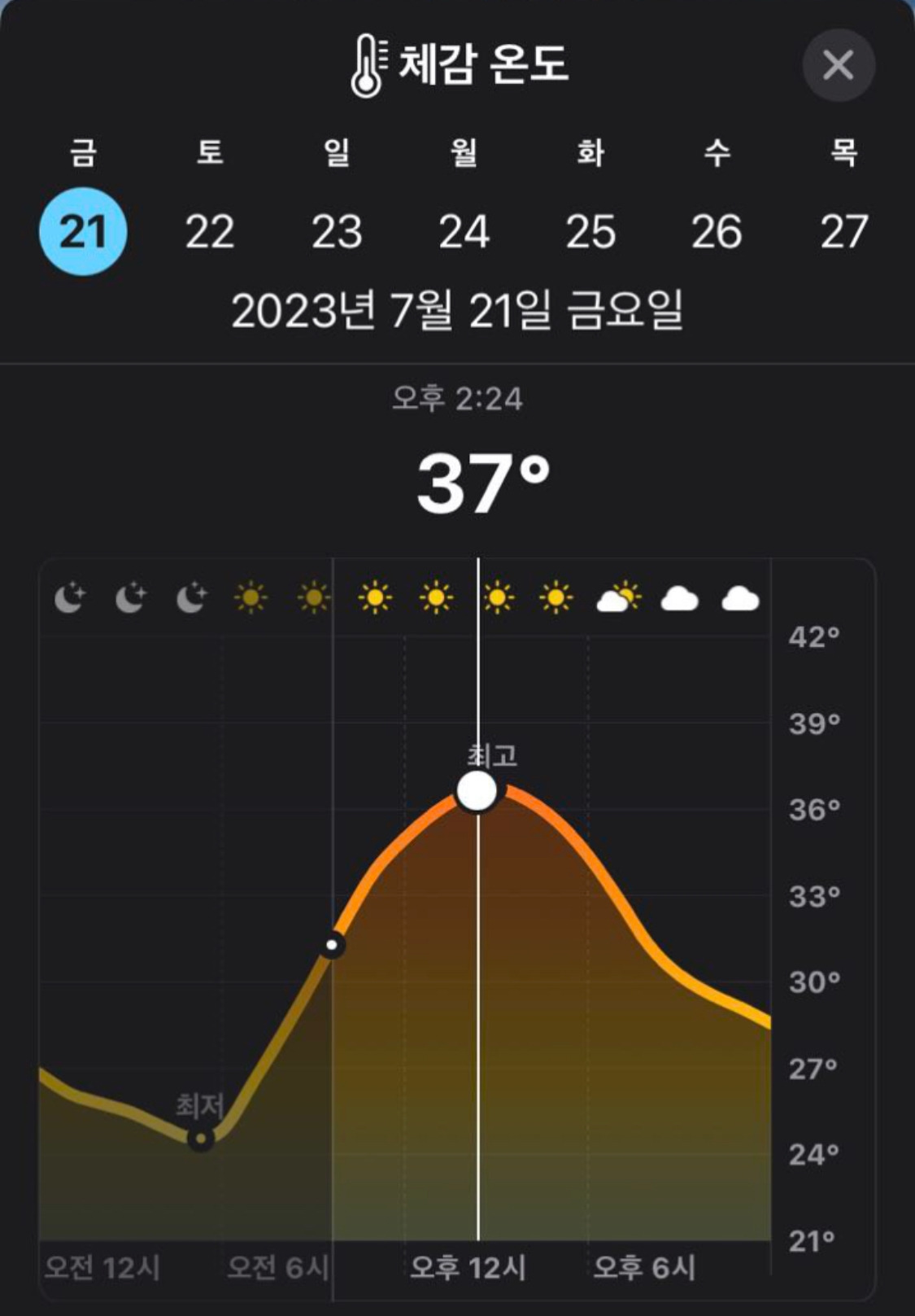 오늘 낮엔 체감온도가 37도까지 올라간다니… 이젠 급격한 사회변화 보다 급격한 기후변화에 빠르게 적응하는 게 미래사회에 대비해야 할 중요한 일이 되어간다.