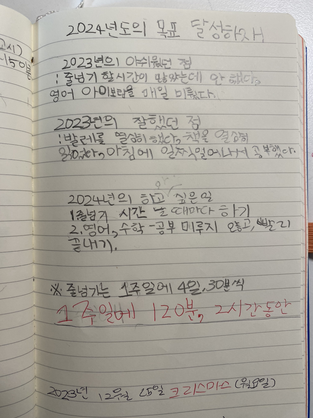 새해 계획을 세우겠다던 아이는 먼저 지난 2023년을 돌아봤나 보다.