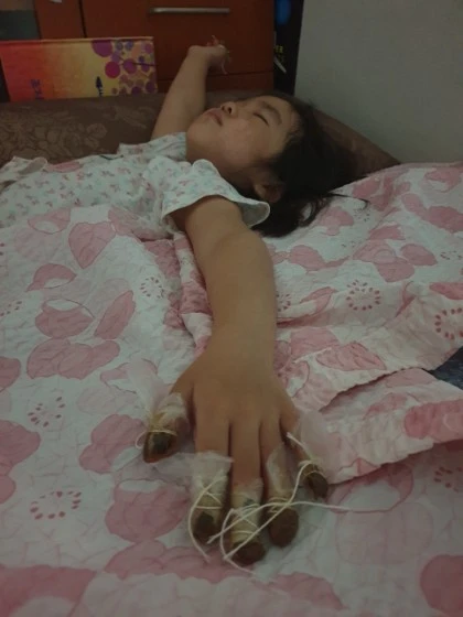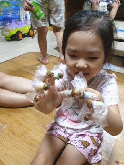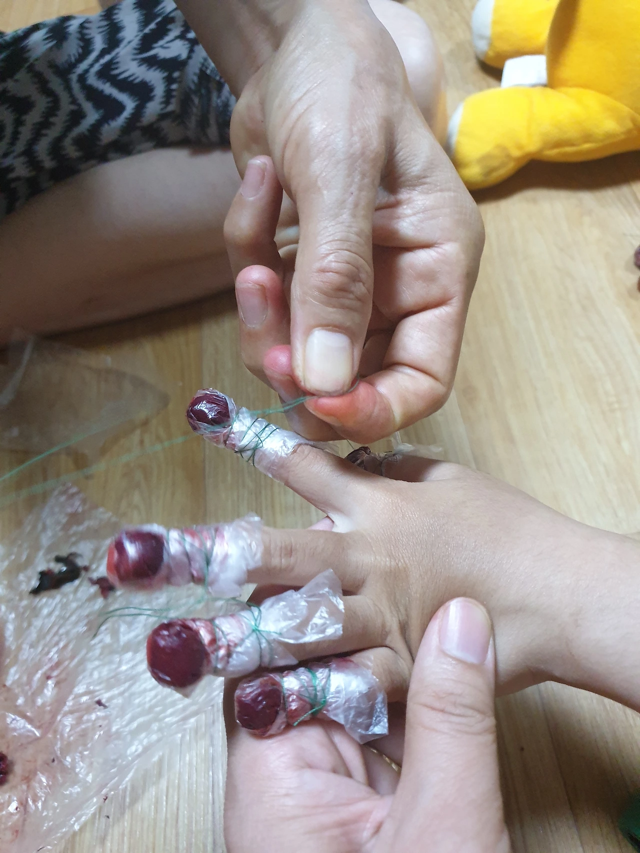 그렇게 열 손가락을 비닐로 감싸고 자는 것만도 많이 불편했을 텐데