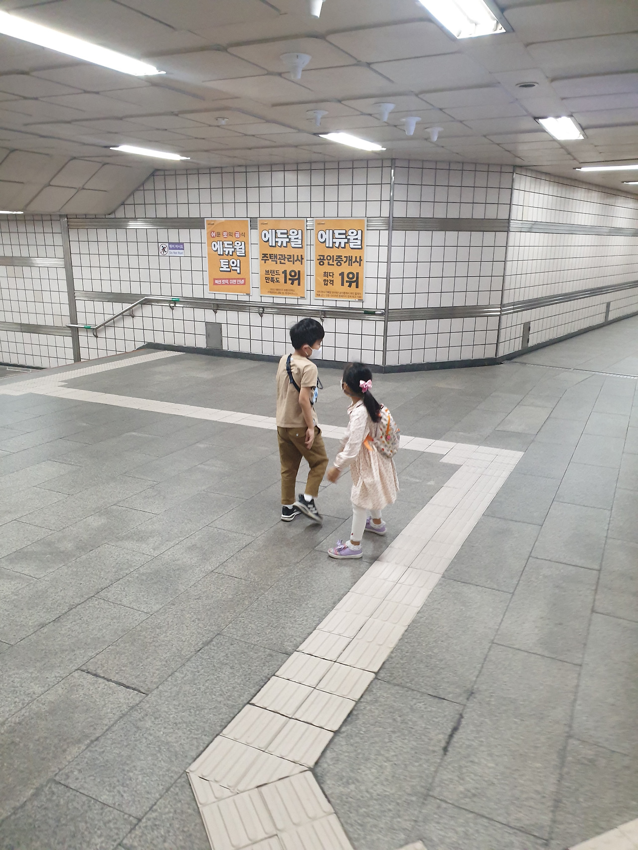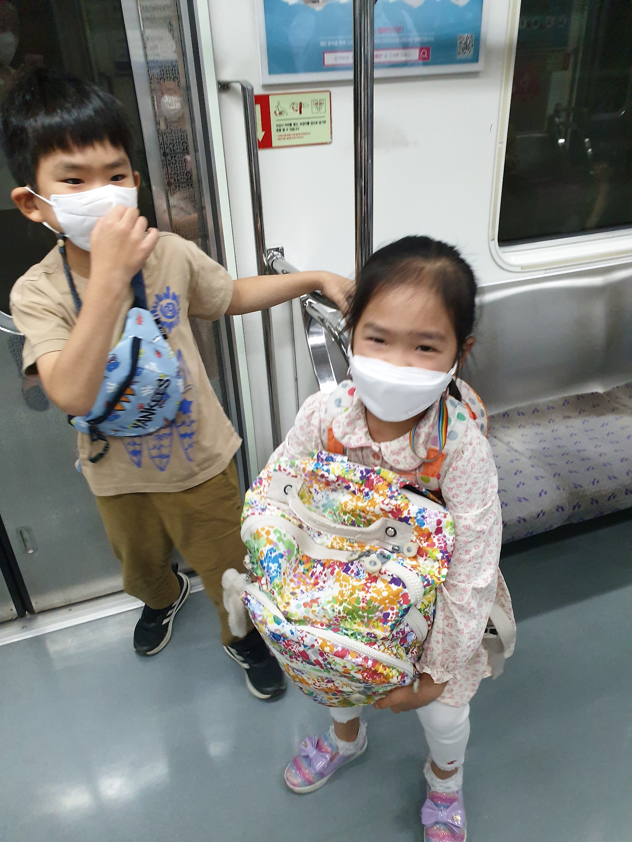 뛰고 웃고 장난치며 무사히 지하철 탑승!