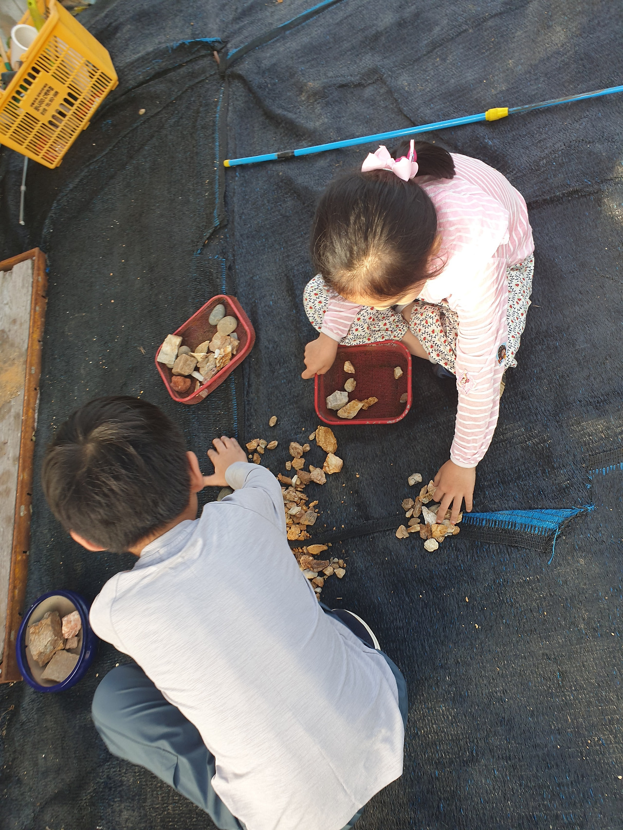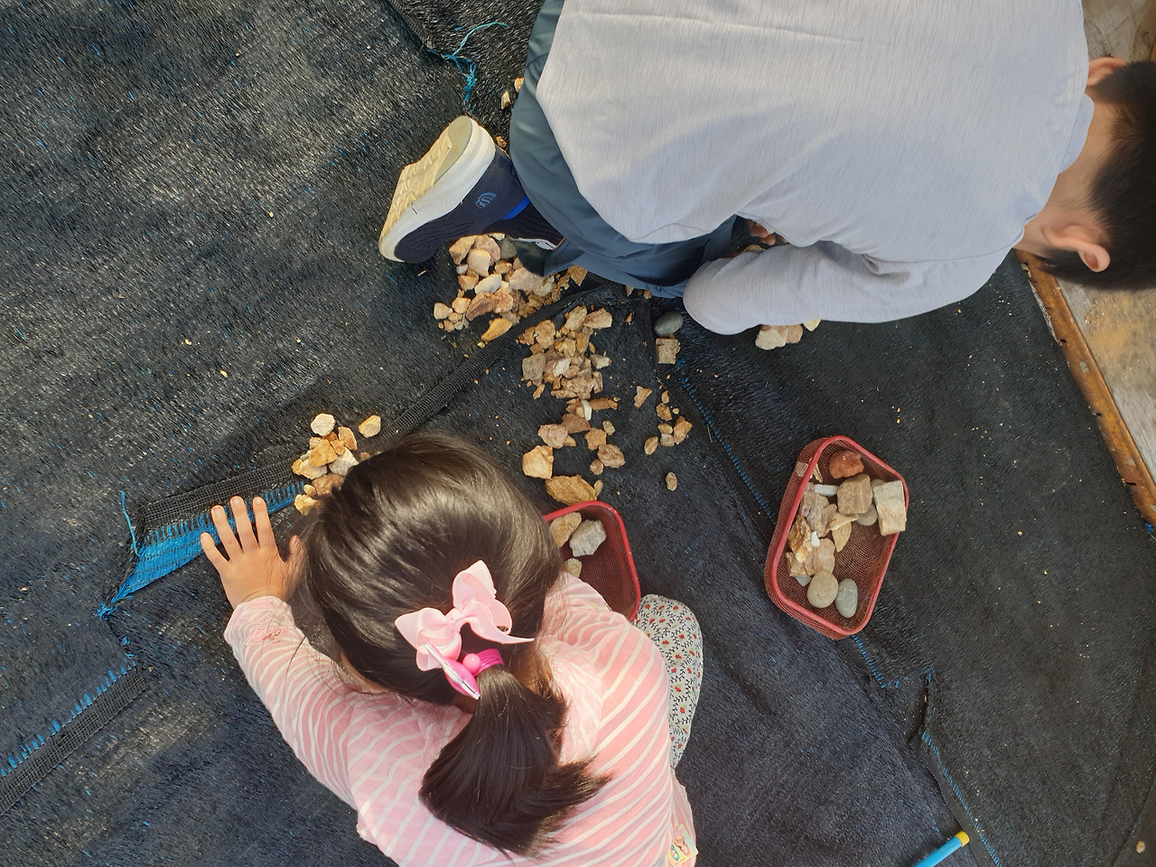 아이들에게는 돌멩이도 재미난 놀거리가 됩니다.