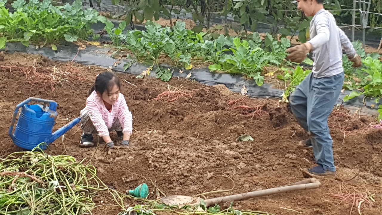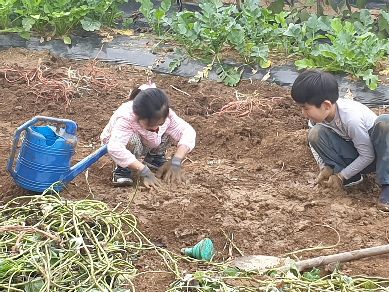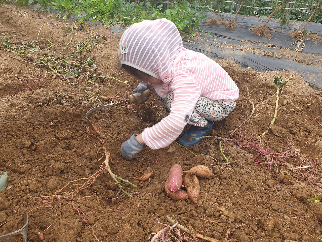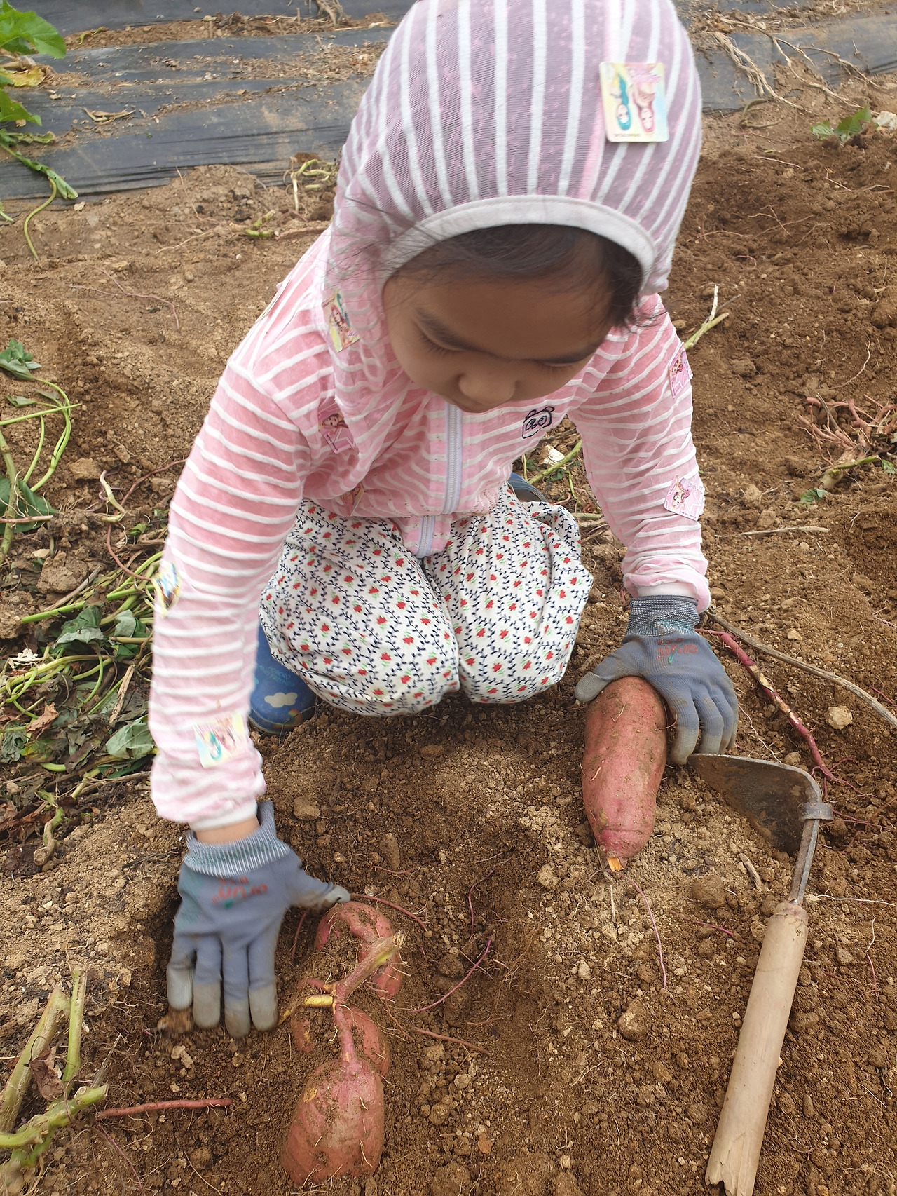 커다란 고구마가 나오자 신이 난 아이들은 열심히 고구마를 캐봅니다.