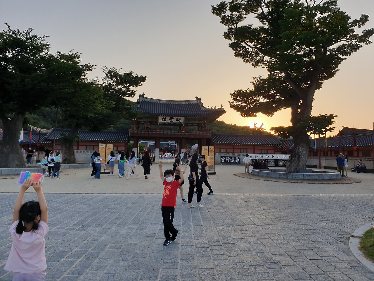 빛을 받은 곳곳의 화성행궁은 아름다웠습니다.