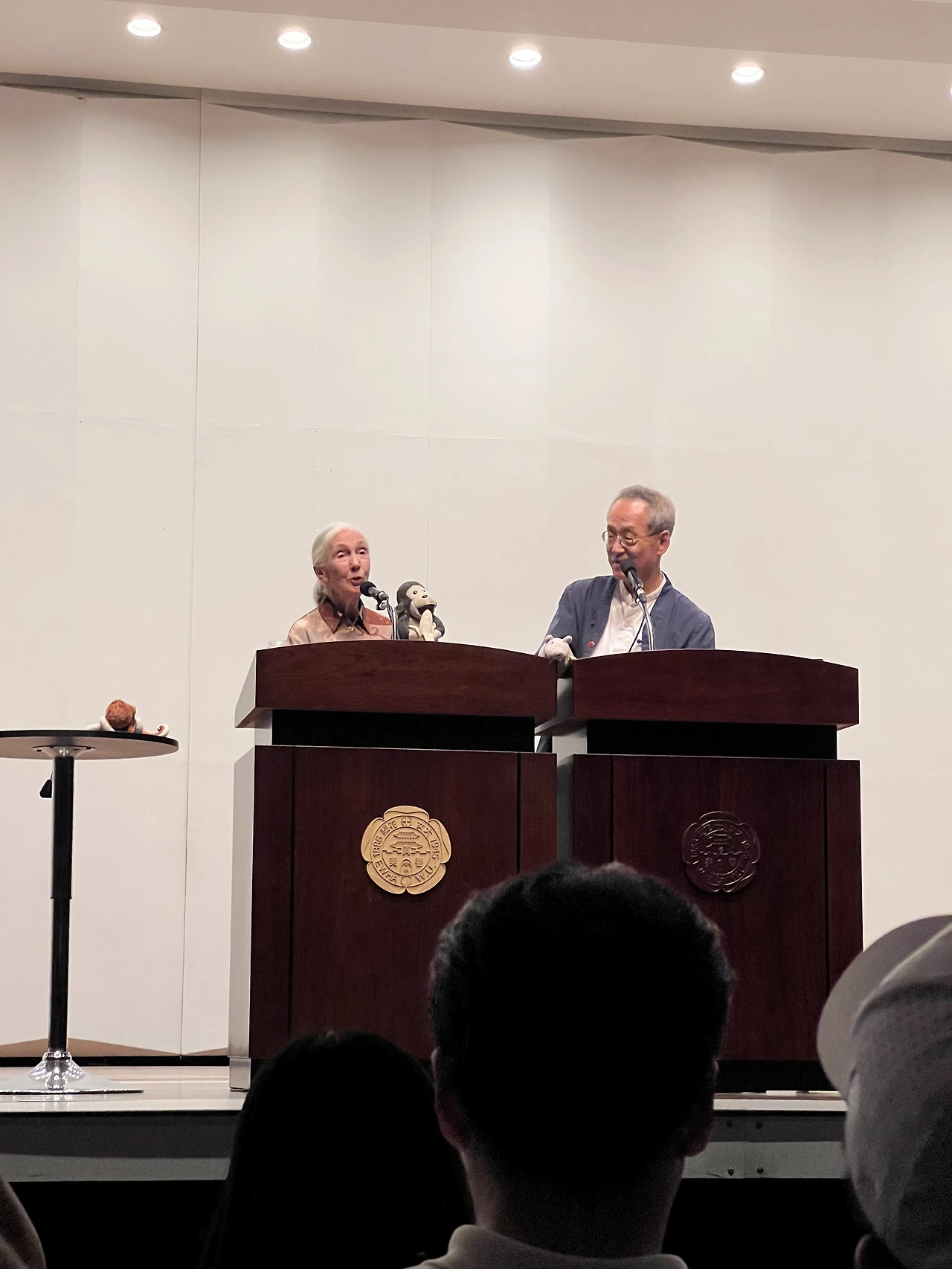 강연 당일이 되어 도착한 강당에서 무대와 꽤 가까운 자리에 앉을 수 있었다. 사회자의 설명을 들으며 별 생각 없이 앉아 있던 와중에 박수가 쏟아지기 시작했다. 무대를 봤더니 창도 없는 이 공간에 한줄기 빛을 받으며 제인구달이 입장하고 있는 것이었다. 이런 게 후광인가 싶었다. 정말 신기한 건 제인구달이 입장만 하고 있었음에도 나도 모르게 가슴이 벅차올랐다. 평소 내가 마음에 품던 사람도 아니고, 관심이 있던 사람도 아닌데 아주 이상한 기분이었다. 이 묘한 감정에 휩싸인 채 강연은 시작되었고, 제인구달은 침팬지 연구를 시작하게 된 이야기부터 지금 활동하고 계시는 환경운동모임이야기까지 본인이 해오셨던, 겪어 오셨던 일들을 차분히 말씀해 주시며 편안하게 강연을 이어 나갔다. 명확한 기후위기의 해법은 없었지만 그녀가 진심으로 동물과 환경을 위해 실천해온 이야기 만으로도 나에게 충분히 울림을 줬다.