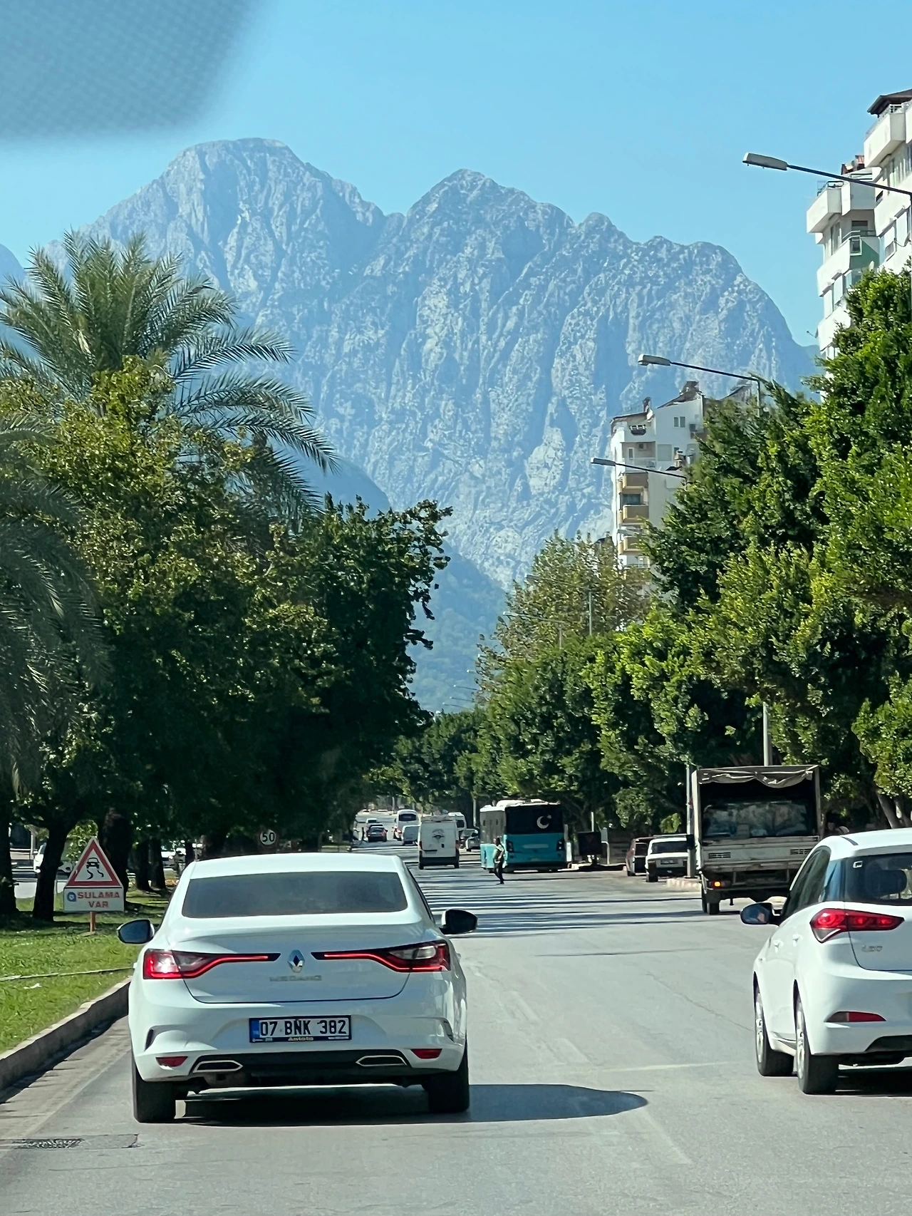 공항을 나서자마자 내리쬐는 밝고 건조한 햇빛, 그리고 바삭하게 느껴질 만큼 상쾌한 공기가 지친 여행자의 마음을 단숨에 깨웠다. 렌터카를 빌려 안탈리아 시내로 향하던 중, 멀리 엄청난 산이 눈에 들어왔다. 우람한 돌산이었다. 산맥을 이룰 만큼 웅장하고, 흰빛이 군데군데 드러나 있었다.
