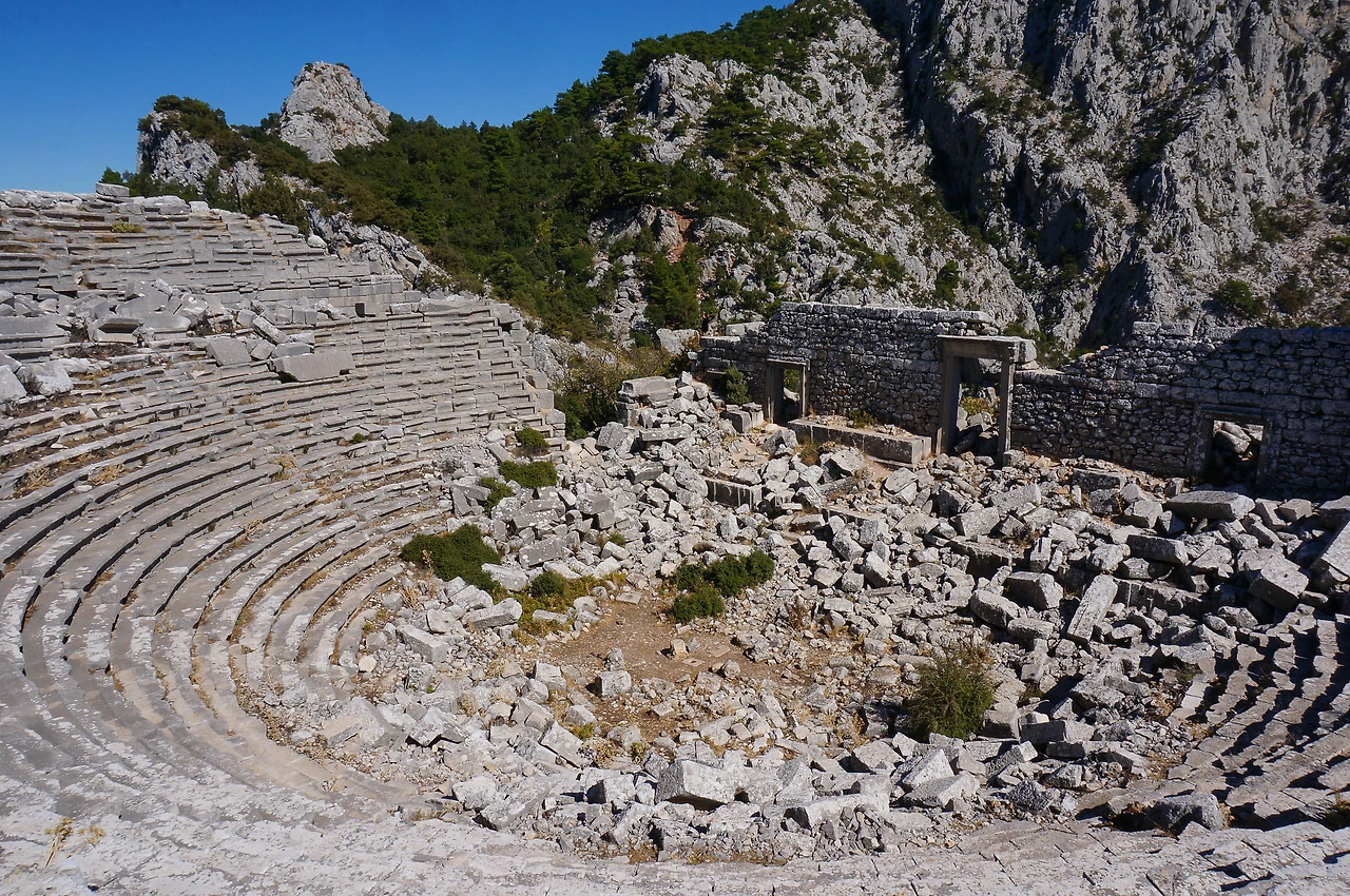 테르메소스는 고대 로마 시대 이전부터 존재했던 피시디아 지역의 산악 부족, 솔림족(Solymi) 의 요새 도시였다고 한다. 솔림족은 호메로스의 일리아드에도 등장하는데, 피시디아의 험준한 산악 지형 속에서 살아온 부족들은 전반적으로 호전적이고 독립적인 성향을 지녔다고 알려져 있다. 기원전 333년, 마케도니아의 알렉산더 대왕이 테르메소스를 정복하려 했지만, 도시가 워낙 높은 산악 지대에 위치하고 천연 요새의 형태를 이루고 있어 결국 공격을 포기했다고 한다. 직접 와보니 정말 그럴 법 했다.