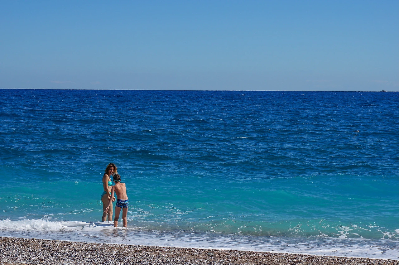 다만 워낙 현지인들만 있어서 그런지, 마치 시골 마을에 서양인이 나타난 것처럼 우리 가족에게 시선이 집중되었다. 터키인들은 잘 웃지 않기 때문에 처음엔 다소 무뚝뚝하고, 어쩐지 화가 난 것처럼 느껴질 때도 있다. 아저씨들은 그래도 보통 눈이 마주치면 눈인사를 하는데, 아주머니들이 더 무뚝뚝한 인상을 주는 경우가 많고, 특히 터키 할머니들은 정말 눈 하나 깜짝하지 않고 뚫어져라 바라보는 경우도 있었다. 이 해변에서도 유독 한 할머니가 우리를 계속 지켜보고 있었다.