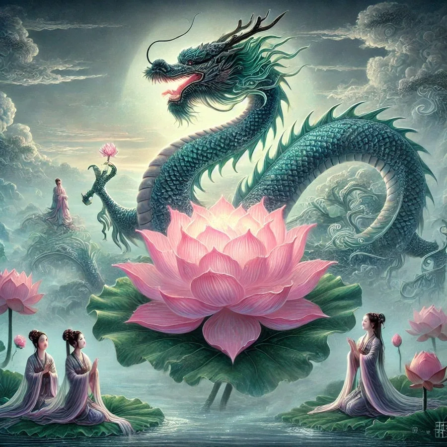 기도의 순간 연꽃을 피워 올리고 청룡으로 승천할 때,