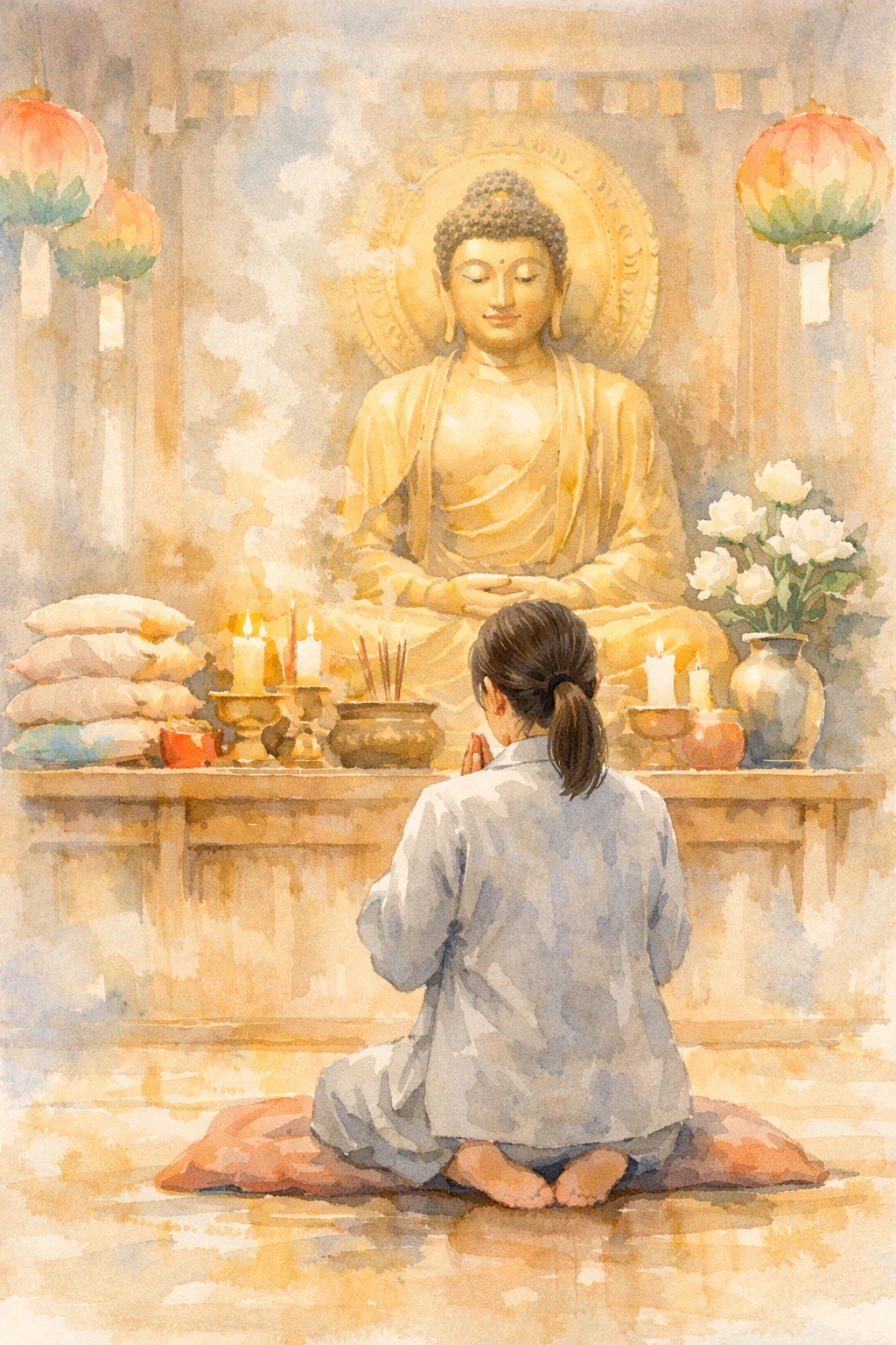 부처님 앞에 앉아