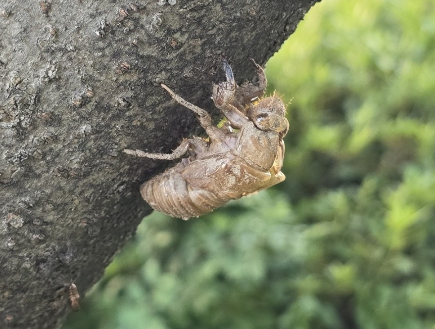 엊그제 아파트 단지에서 나무에 매달린 매미 허물을 발견했다. 사진을 찍으면서 보니 등 쪽이 찢어져 있었다. 탈피할 때 등으로 빠져나가는구나. 제 몸을 스스로 뚫고 나가려면 집념의 크기가 얼마나 커야 할까.