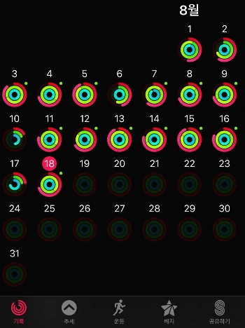 별거 아닌 것 같지만 소리로 듣는 것과 손목의 진동으로 느껴지는 알람 기능은 많은 차이가 있다. 거의 100프로 그 시간에 잘 일어날 수 있다. 한 번은 애플 워치를 충전기에 두고 손목에 착용하지 않고 잔 적 이 있었다. 그런 날은 예상보다 늦은 시간에 일어났던 기억이 있다. 학생 때 엄마가 학교가라고 깨우듯이 애플 워치가 나를 아침마다 운동의 길로 밀어주는 느낌을 받는다.