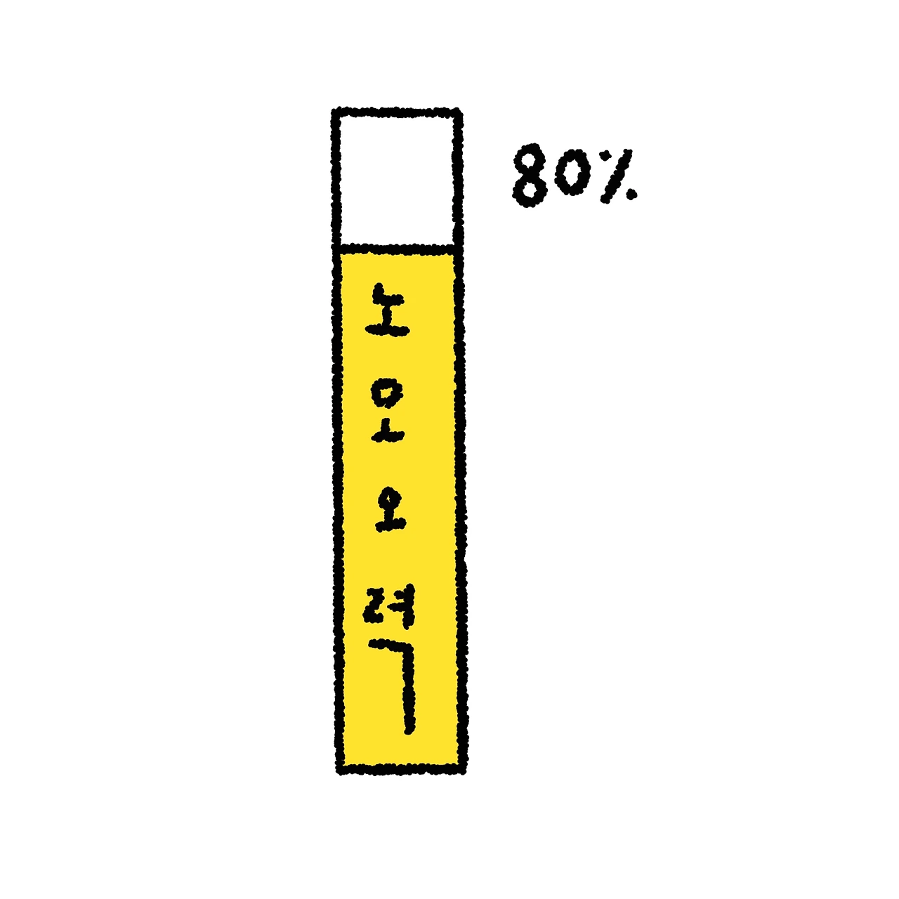 이제는 나도 80% 노력을 하려고 ‘노력’한다. 그 이유는 ‘덜’하고 싶어서가 아니라 ‘오래’하고 싶어서다. 생각보다 내 맘대로 세상은 돌아가지 않고, 어처구니없는 일들이 도사리고 있는데 100%를 쓴다면 전원이 꺼져버리고 말 테니. (결국은 100%를 채우기 위한 노력인거다.)