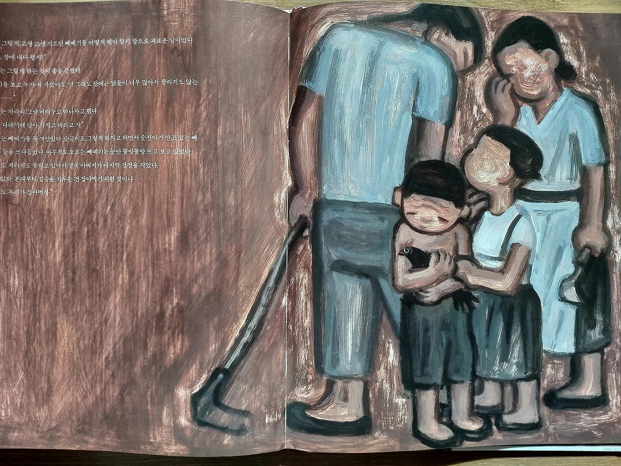 상처 입은 빼떼기를 돌보는 순진이 어머니, 가족이 모두 힘을 합쳐 닭장을 만드는 모습, 헝겊을 잘라 무명 저고리를 만드는 어머니 모습의 그림들은 마치 박수근의 그림처럼 토속적이고 따뜻하고 포근하다. 그래서 빼떼기 이야기는 살아 숨 쉬는 작품으로 거듭난다.