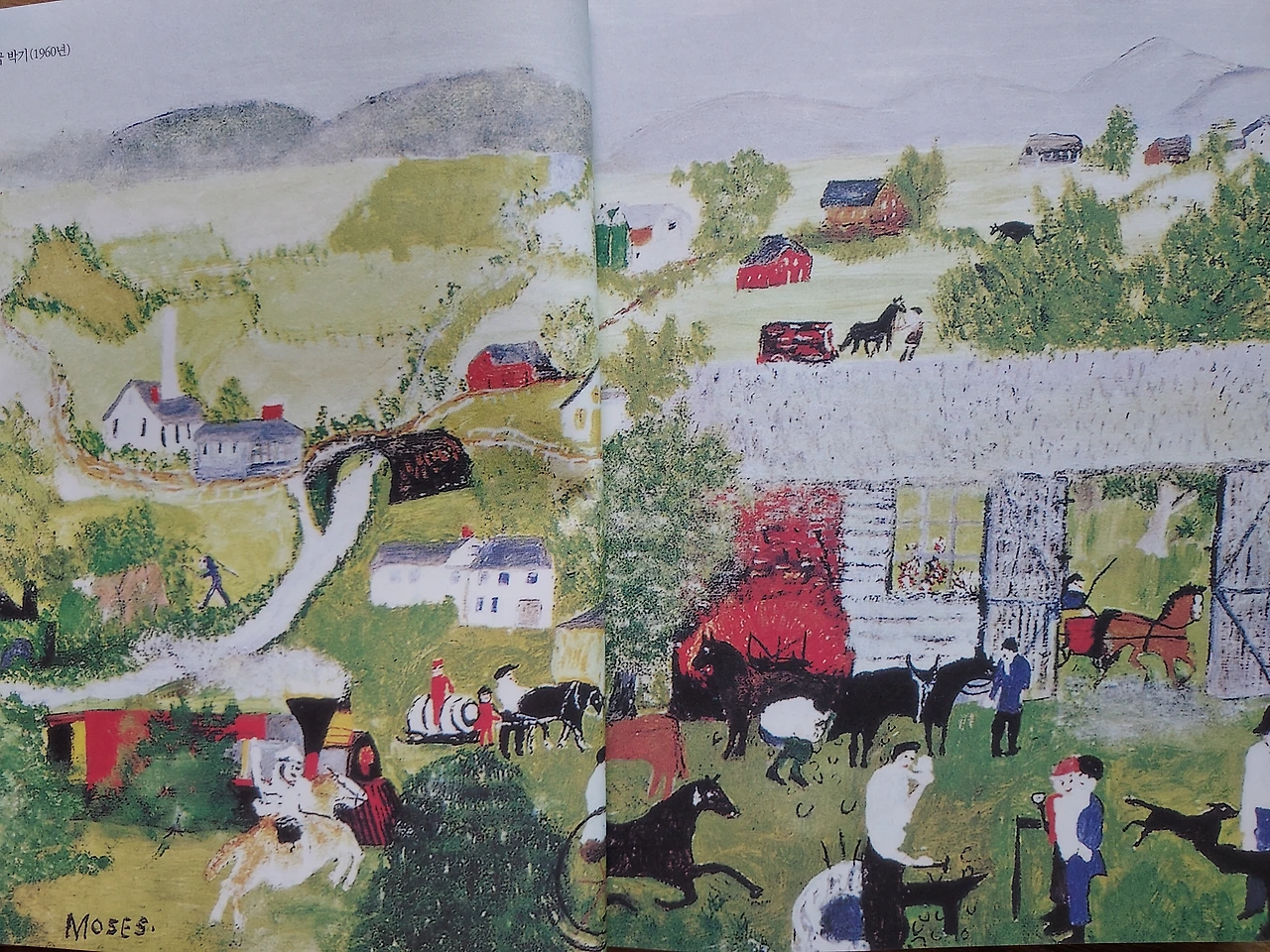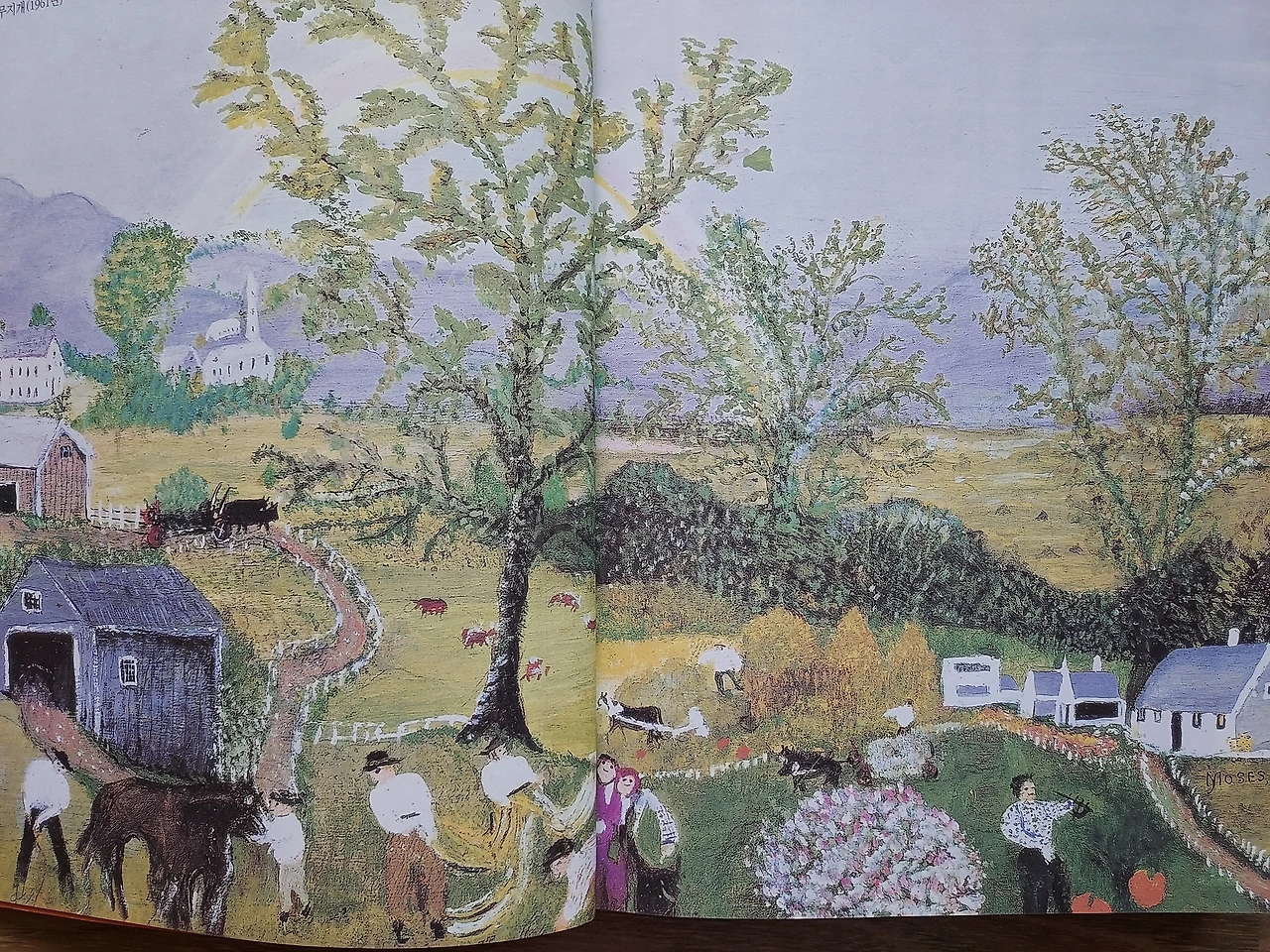 미국인이 가장 사랑하는 예술가 중 한 명으로 손꼽히는 화가, 모지스 할머니 이야기와 그림이 한때 유행한 적이 있었다. 그렇게 한쪽 귀로만 듣던 그녀의 그림이 궁금해 도서관에서 책을 빌려왔다.