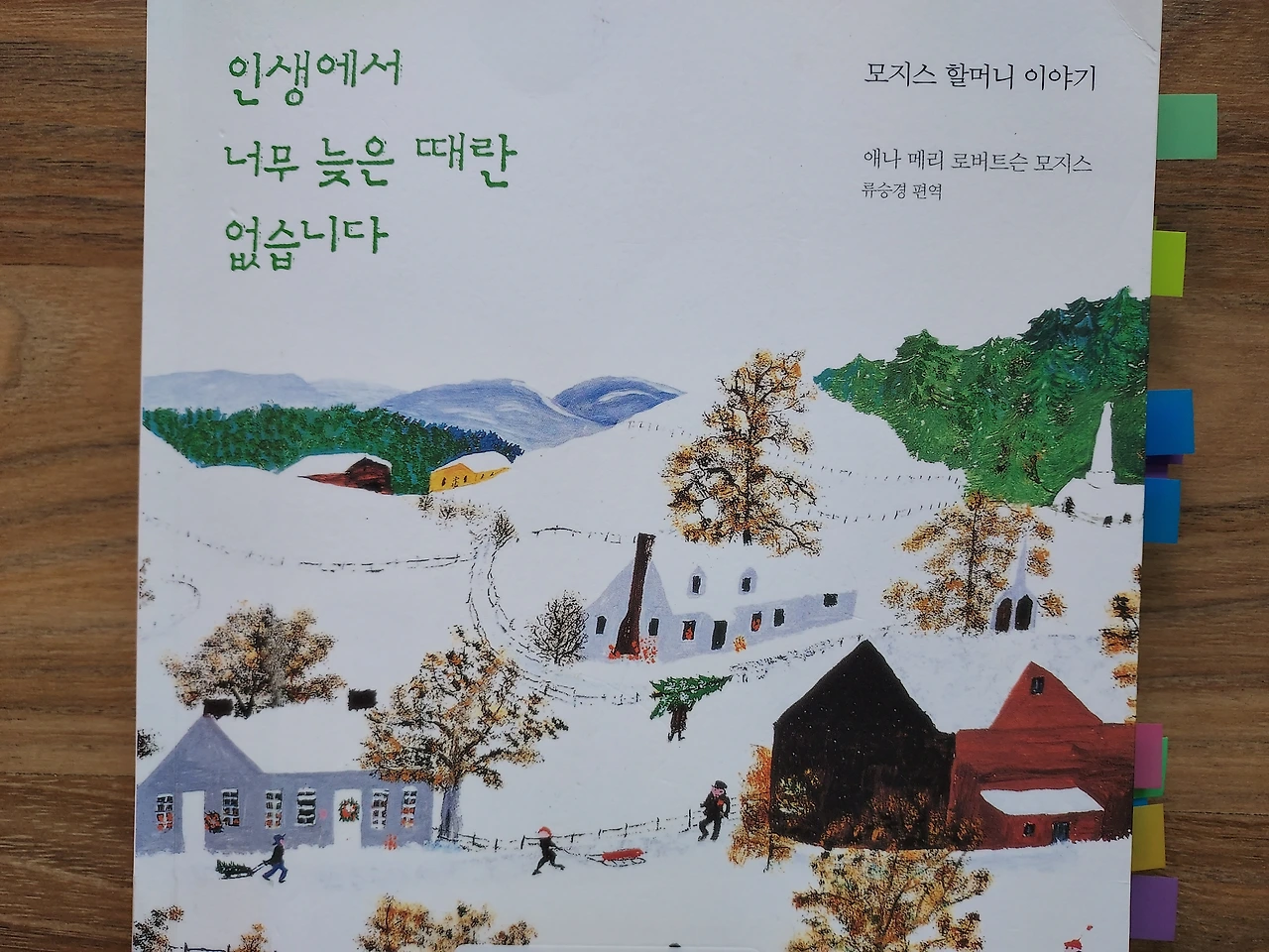 수오서재에서 발행한 책 제목은 <인생에서 너무 늦은 때란 없습니다>, 모지스 할머니 이야기라는 부제가 붙어있다. 책에는 그녀의 그림 67점이 들어있을 뿐 아니라 그녀의 삶에 대해 쓰여 있다.