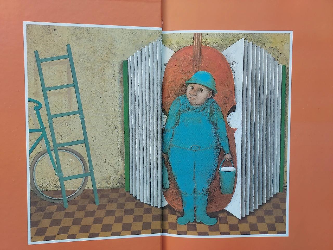 청소부 아저씨는 파란색 모자를 쓰고 파란색 작업복을 입고 독일의 거리 표지판을 닦는다. 그는 작가와 음악가들의 거리를 맡고 있는데 이를 테면 바흐 거리, 베토벤 거리, 하이든 거리, 모차르트 거리, 괴테 거리, 실러 거리, 토마스 만 광장, 브레히트 거리, 빌헬름 부슈 광장 등이다.