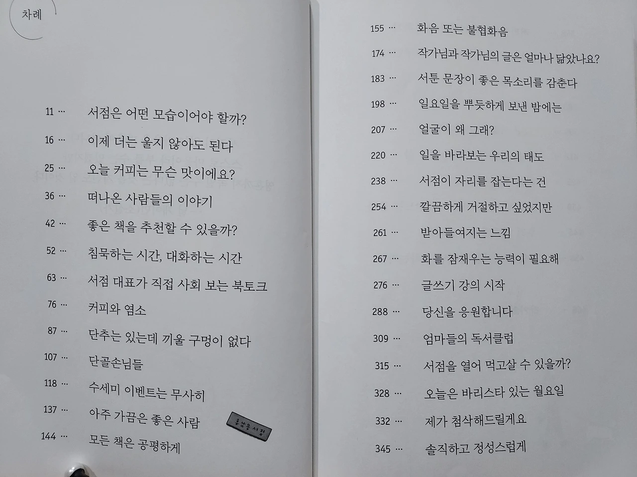 죽어라 일만 했던 세계에서 벗어난 영주는 자신이 좋아했던 책과 서점을 떠올리곤 서점을 차린다. 영주에게 서점은 편안함이다. 매일 책을 읽으면서 그녀는 자신의 내면을 들여다보기 시작한다. 나를 소외시키지 않고 사는지, 나 자신으로 존재하고 사는지, 내가 나를 아끼고 사랑하는지 묻고 답한다.