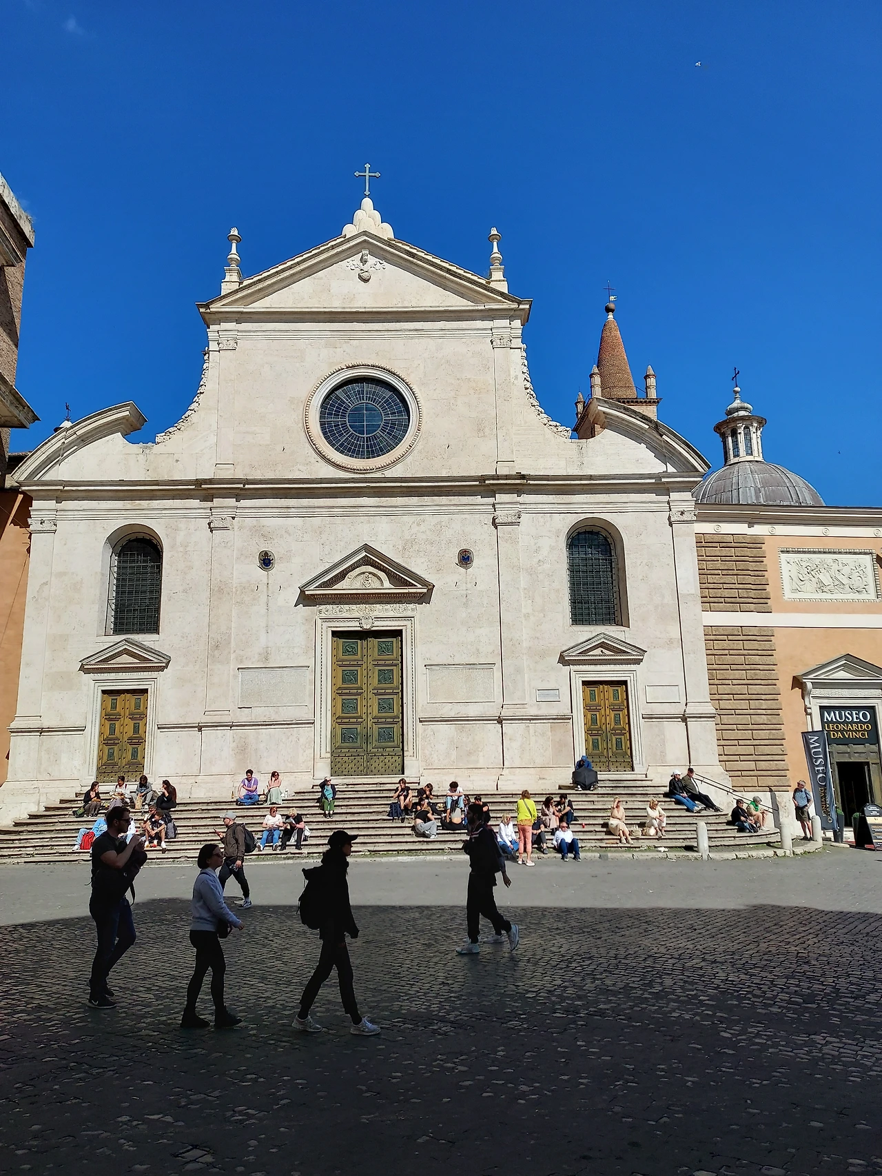우리는 파씨 앞에서 트램을 타고 테르미니역까지 가 다시 지하철을 타고 플라미니오역에서 내렸다. 지하철역에서 올라와 포폴로 문을 지나니 500년 전 르네상스 양식으로 지어진 산타마리아 델 포폴로 성당 파사드가 보인다.