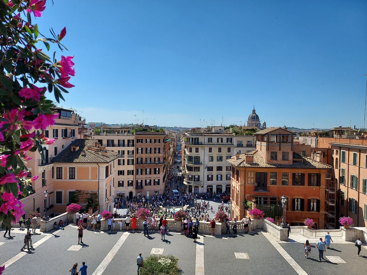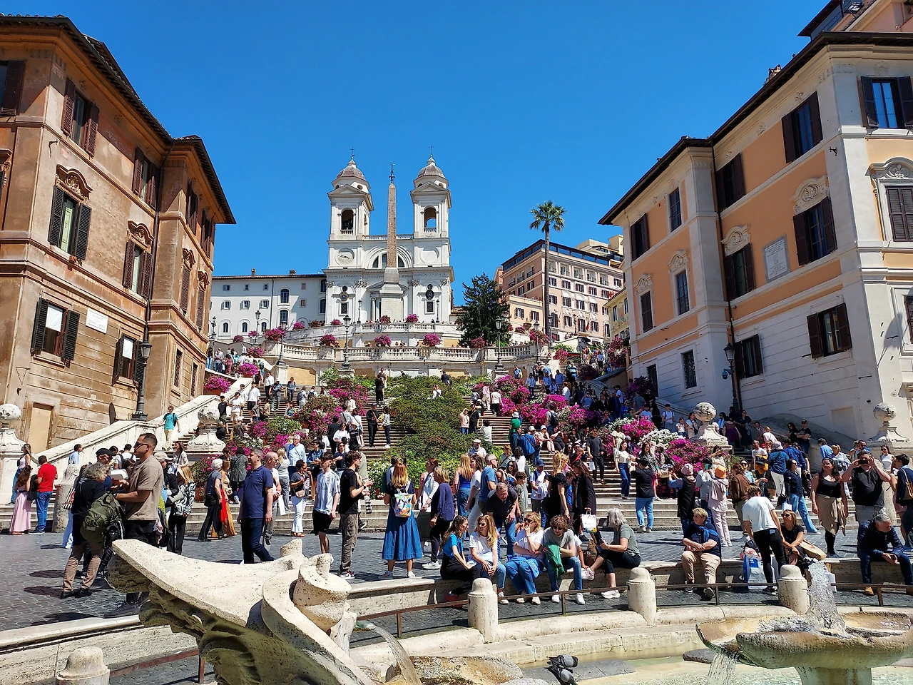 17세기에 스페인 대사관이 인근에 들어서면서 이름 붙여진 스페인 광장의 메인은 성 삼위일체 성당까지 이어진 계단인데 바로크 양식으로 만들어진 137개의 계단을 오르면 여기서도 로마의 전망을 바라볼 수 있다.