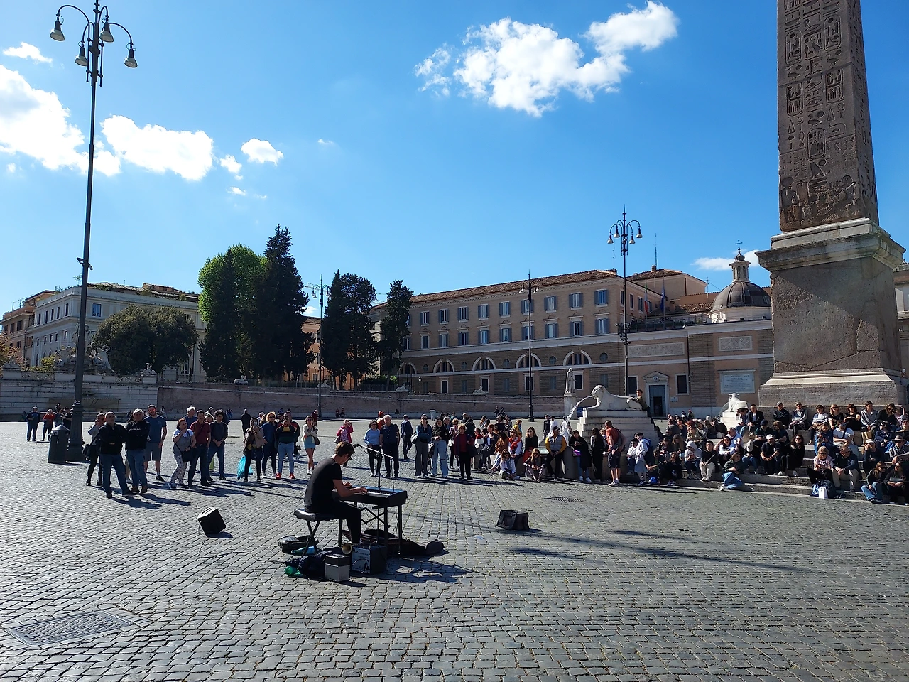 다시 내려온 포폴로 광장에서는 버스킹 공연이 한창이었다. 건반을 연주하며 노래 부르는 젊은 가수의 음색은 부드러웠고 음악은 감미로웠다. 마음을 몽글거리게 하는 그의 음악을 듣기 위해 우리는 오벨리스크 계단에 앉아 한참 동안 음악을 즐겼다.
