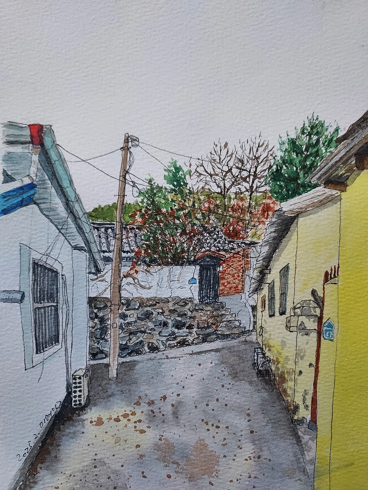 사람이든 사물이든 생겨났다가 사라지는 것이 운명이지만 그래도 보존하고 지켜나가야 할 것은 더 오래 살아남았으면 좋겠다는 생각을 하며 옛 기와집이 있는 오래된 골목길을 그림으로 그려 봅니다.