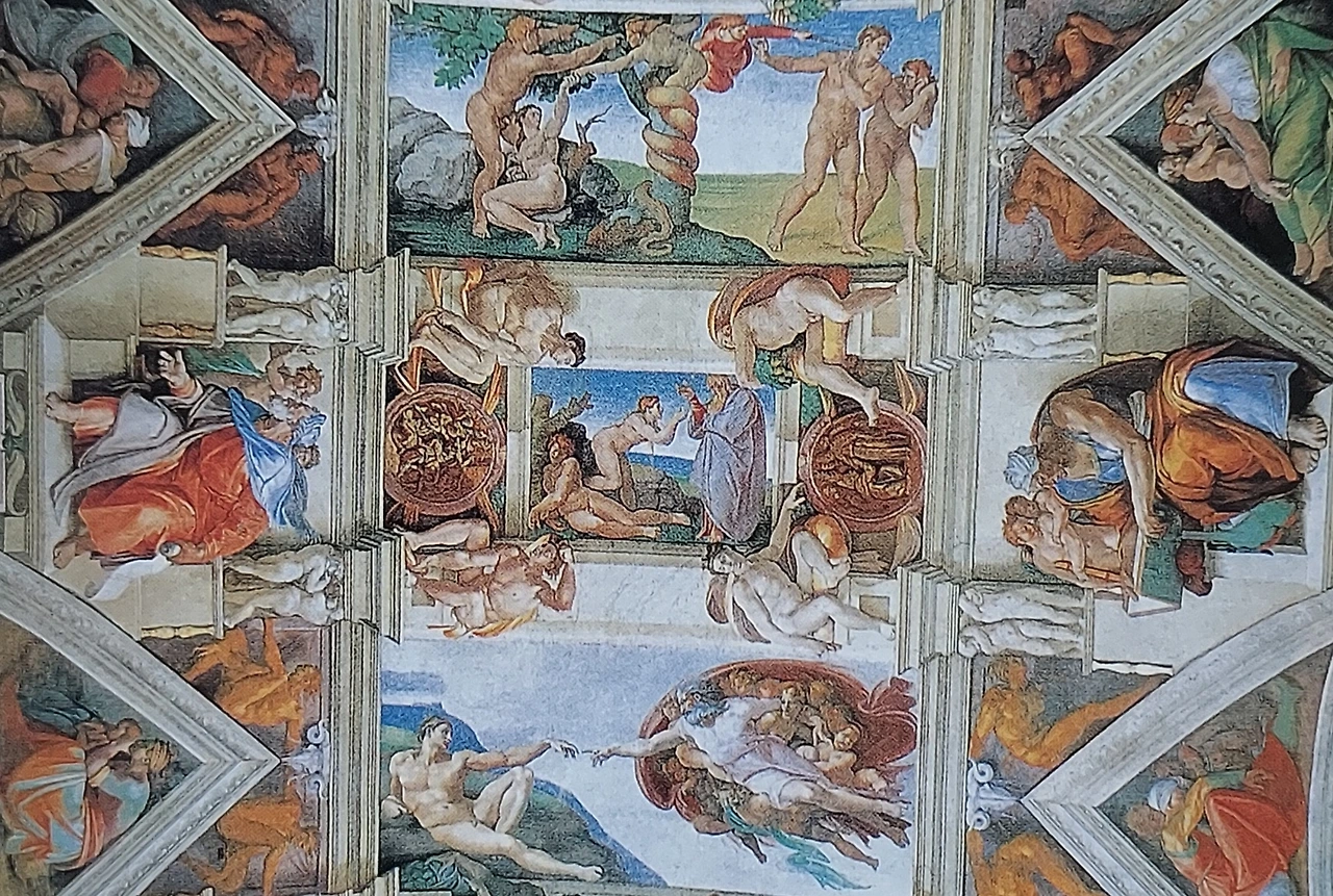 시스티나 성당의 천장에서는 천지가 요동치고 있었다. 신의 손길로 바다와 땅이 생겨나고 해와 달이 만들어지고 최초의 인간 아담이 창조되고 있었다.