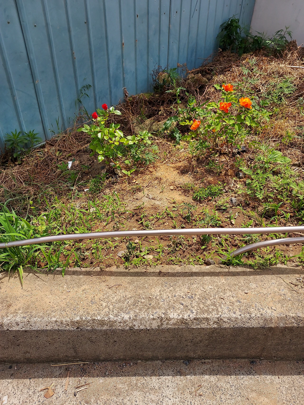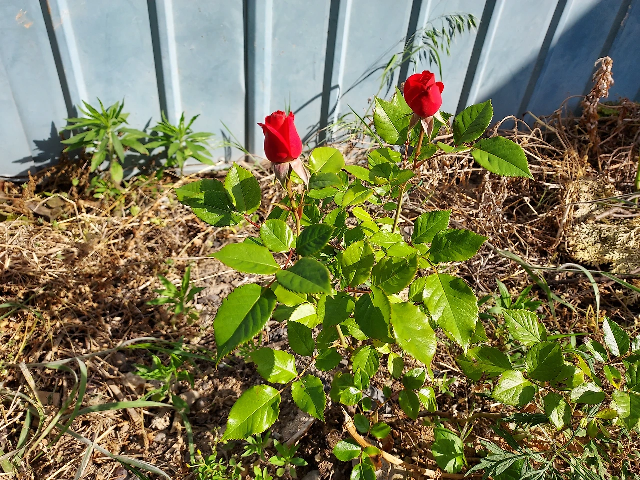 남편과 함께 작년에 장미 세 그루를 우리 땅 옆 길가에 심었습니다. 안타깝게도 한 그루는 죽고 두 그루는 살아 남아 꽃을 피웠습니다. 어린 장미가 이사 와서 적응하고 한겨울을 버텨 꽃을 피워 낸 게 대견합니다.