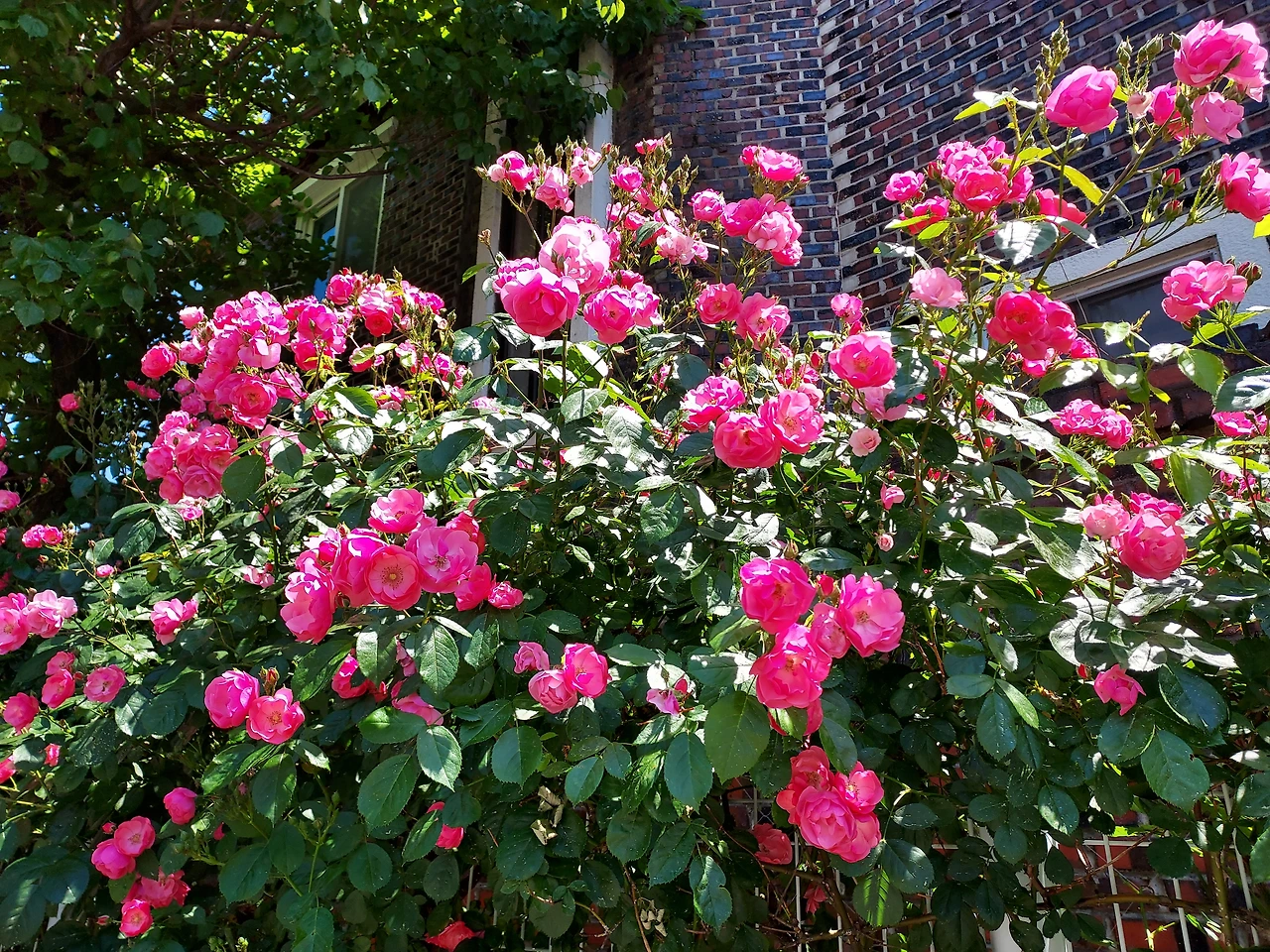 담장 위로 울타리 밖으로 고개를 내민 장미를 통해 이웃들의 인사를 받습니다.