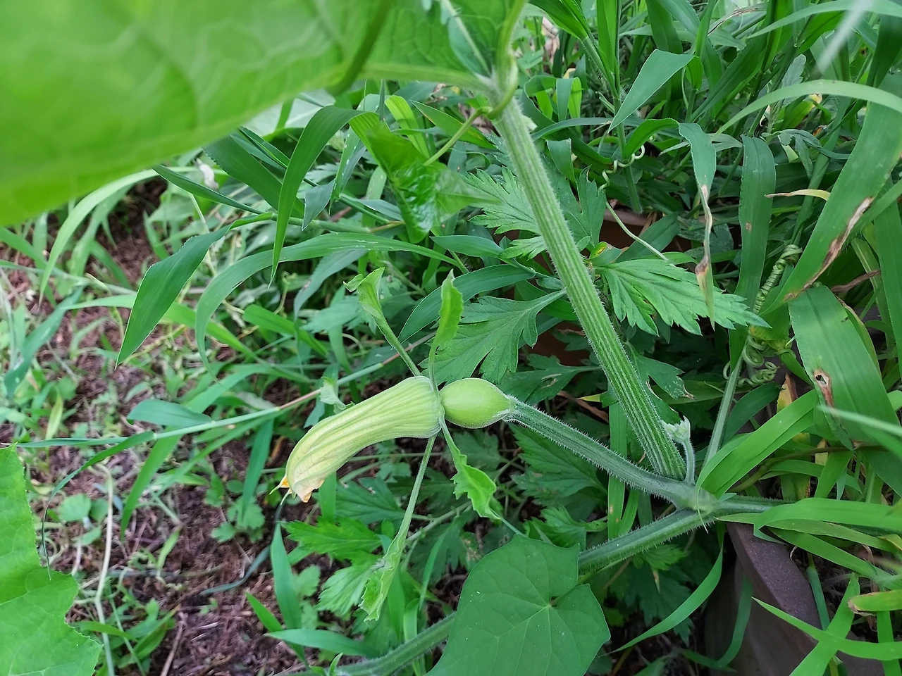 어느새 꽃이 지는 자리에 줄기를 따라서 자그마하게 열매가 맺혀 있다. 앙증맞을 정도로 작고 귀여운 호박 열매는 신비로움 그 자체였다. 호박잎이 워낙 크게 자라서 잎을 헤치고 꽃이 있는 자리에 열매가 열렸나 들여다봐야 했다. 그리고 며칠 전 처음으로 호박 하나를 수확했다. 한 손으로 들었을 때 무게감이 꽤 나가는 싱싱한 호박이었다.