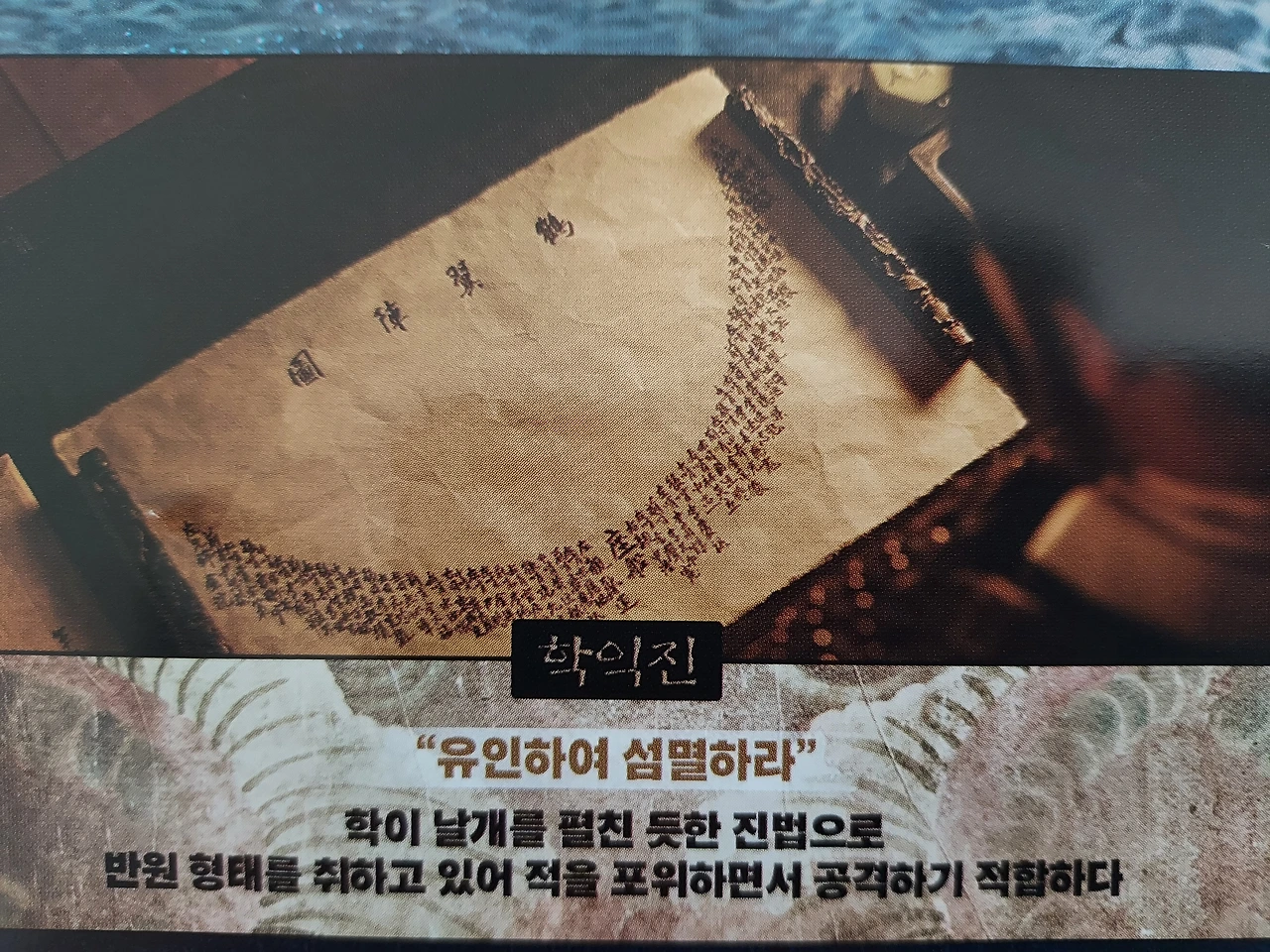 빼앗으려는 자 와키자카도 지키려는 자 이순신도 적의 정보를 보다 면밀히 알아내기 위해 적의 진영에 세작을 보낸다. 와키자카의 세작은 구선(거북선)의 설계도를 훔친다. 왜군에게 구선은 두려움과 공포의 대상이다. 구선의 머리인 용의 얼굴이 스크린 속에서 빠른 속도로 화면 앞으로 다가왔을 때 관객인 나조차 섬뜩했다. 거대한 머리가 쿵, 소리와 함께 배를 들이받았을 때 왜군들의 공포감은 극에 달했을 것이다. 전투에서 승리해 자신의 탐욕을 손으로 잡고 싶은 와키자카에게 구선은 반드시 극복해야 할 대상이다.