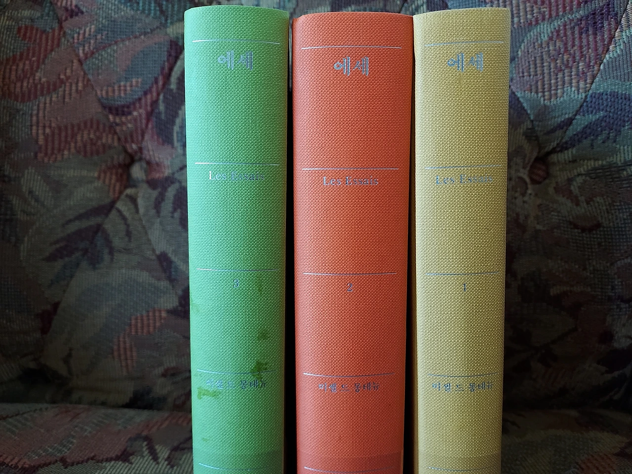 그래서일까, 처음 에세이를 쓴 몽테뉴는 무엇을 어떤 방식으로 썼을까 궁금해졌다. 몽테뉴의 <에세>는 양장본으로 만들어진 두꺼운 책 세 권으로 구성되어 있다.