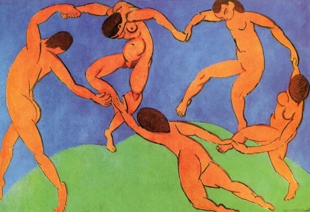 20세기를 대표하는 화가 중 한 명인 마티스는 사실적인 표현이나 원근법으로부터 자유롭게 인물의 움직임과 색감으로 인상적인 그림을 남겼다. 그들은 손에 손을 잡고 원무를 그리며 춤을 춘다. 함께 춤을 추면서 각자가 자신의 춤에 몰두하고 있음이 느껴진다. 하나의 손이 다른 손을 놓쳐 떨어진 손을 잡으려 팔을 뻗어 동작을 크게 하는 포즈는 보는 이에게 긴장감을 준다. 그래서 그림을 보는 나는 역동성과 생동감, 강렬함과 긴장감을 동시에 느낀다.
