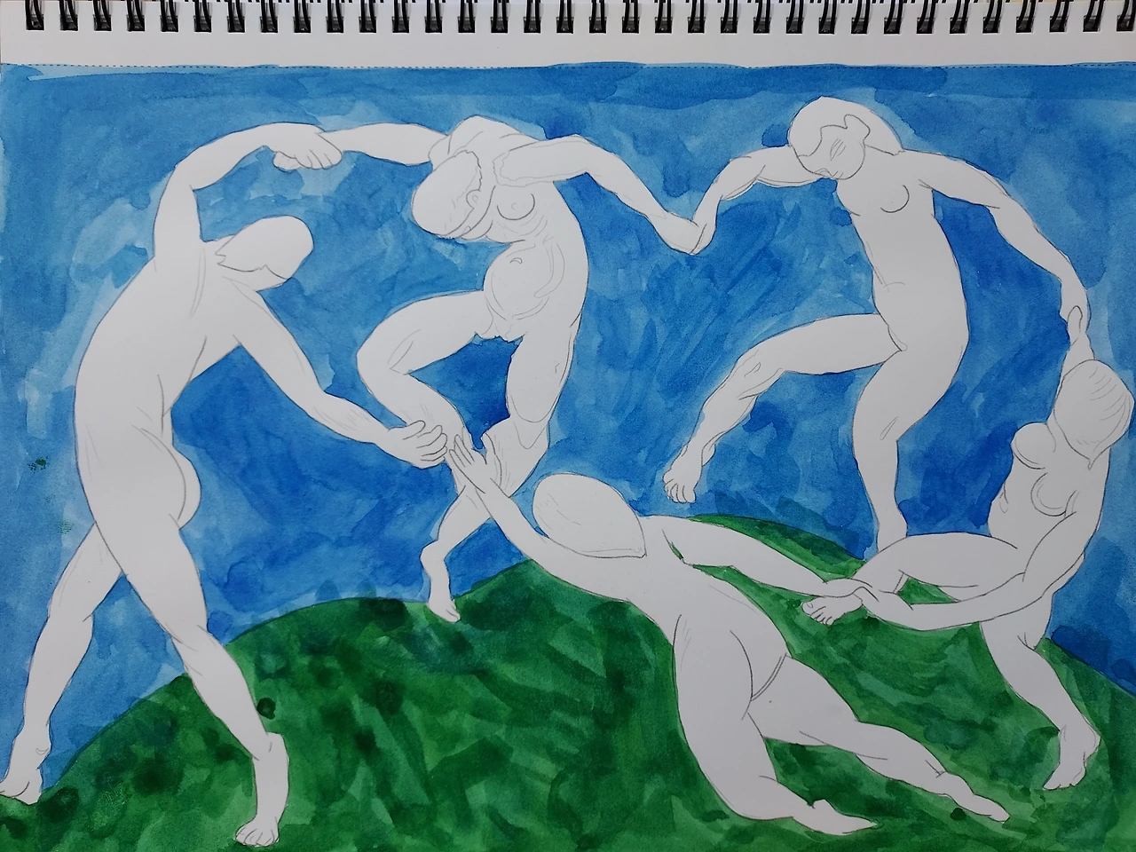 앙리 마티스의 <춤>, 하늘과 땅 수채화 채색