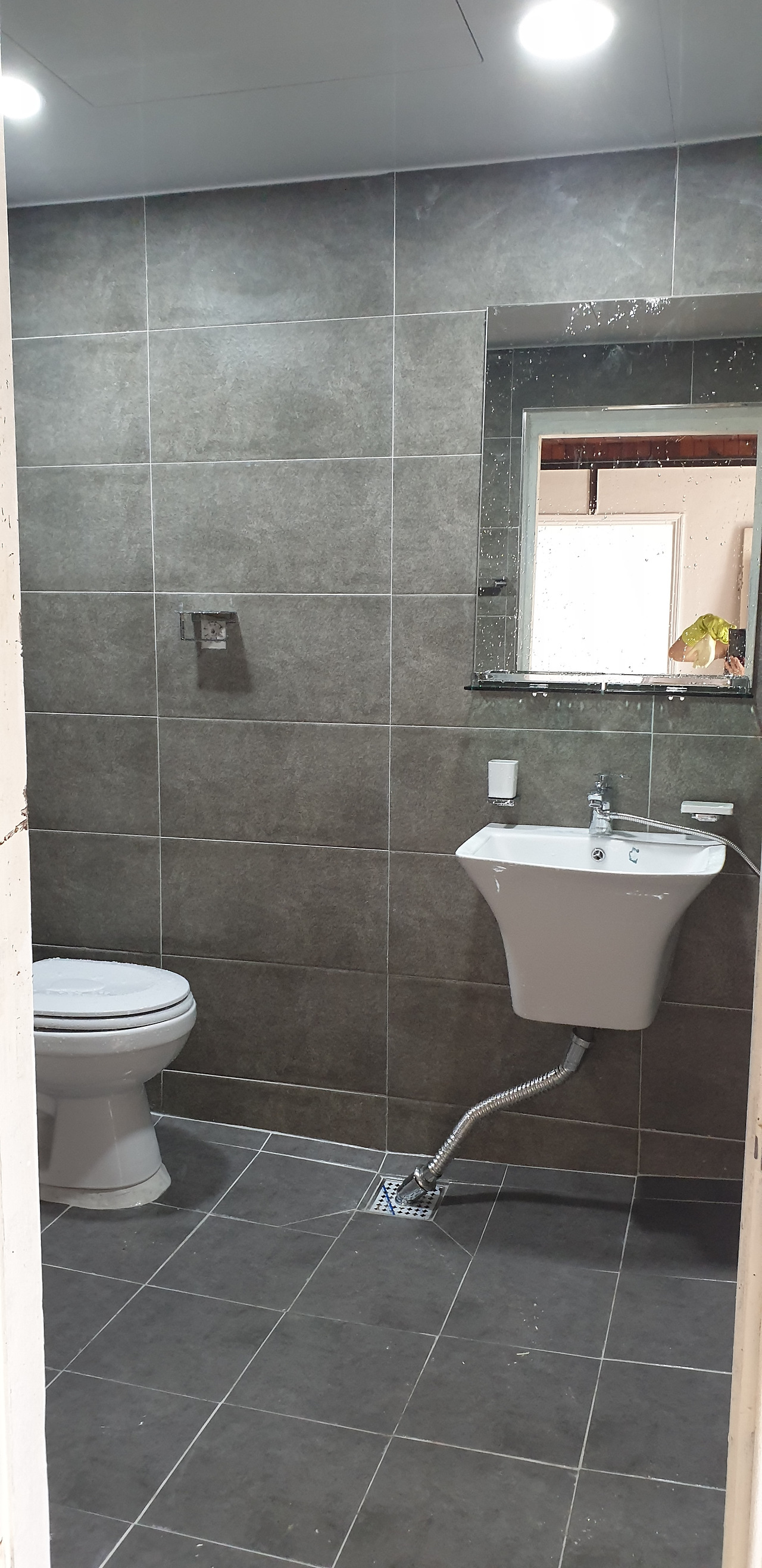 욕실 시공 후 사진욕실에 세면대 하수 배관이 없습니다. 샤워기만 있던 자리라 그렇습니다. 세면대 배수는 세탁기 유가를 써서 물을 내려 보냅니다.