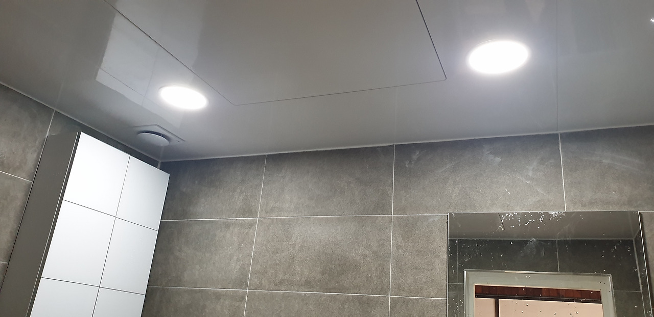 욕실 시공 후 사진돔천장 설치했습니다. 몇 달 전 우리집 욕실의 꺾인 천장도 작업했고, 친구 장모님 댁에서 천장이 낮아 돔천장을 어렵게 작업했던 경험 때문에 이렇게 천장이 높은 사각형 욕실 돔천장 작업은 어렵지 않았습니다. 어려운 것을 경험해 보면 기본이 쉽다는 것이 느껴집니다.