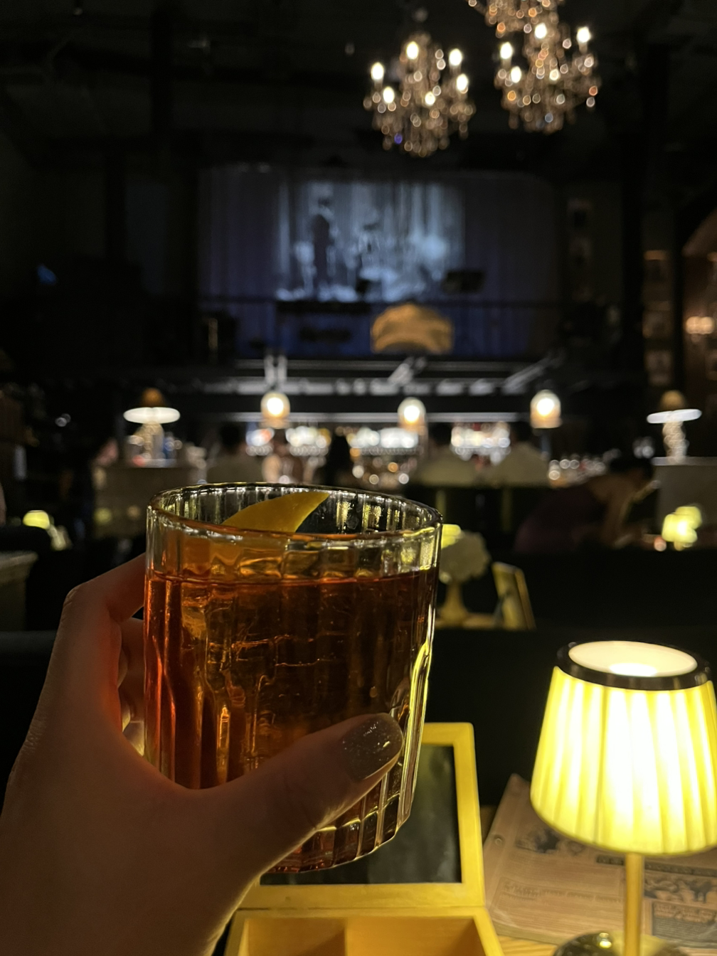 칵테일이 너무 유니크하게 생김. 다들 받고 “뭐야 이거” 표정. 보는 재미도 있음.