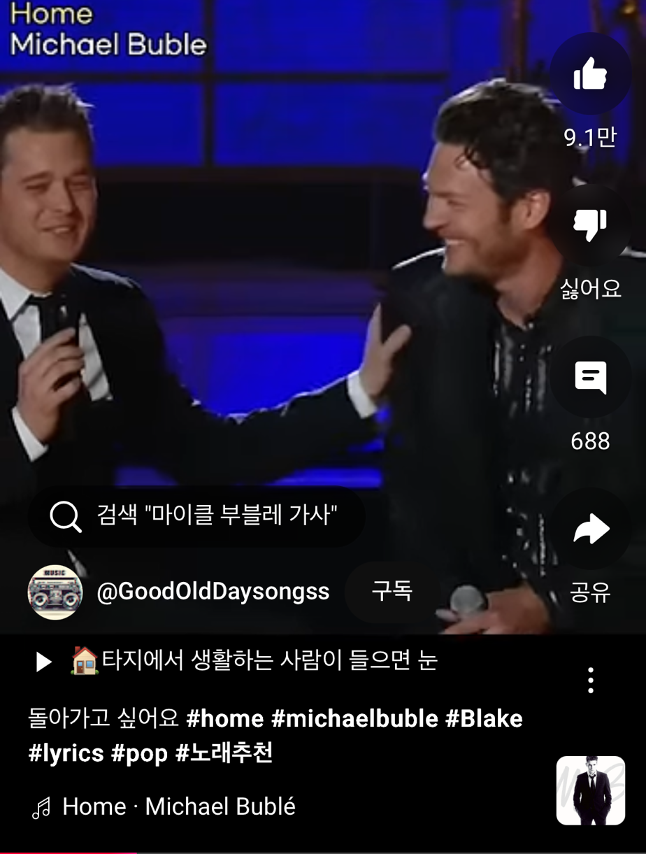 마이크 부블레의 'Home' 쇼츠가..