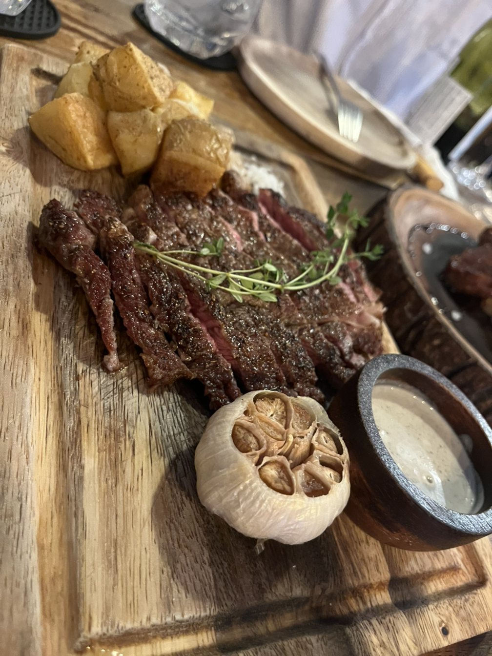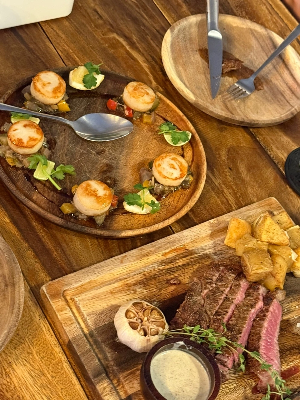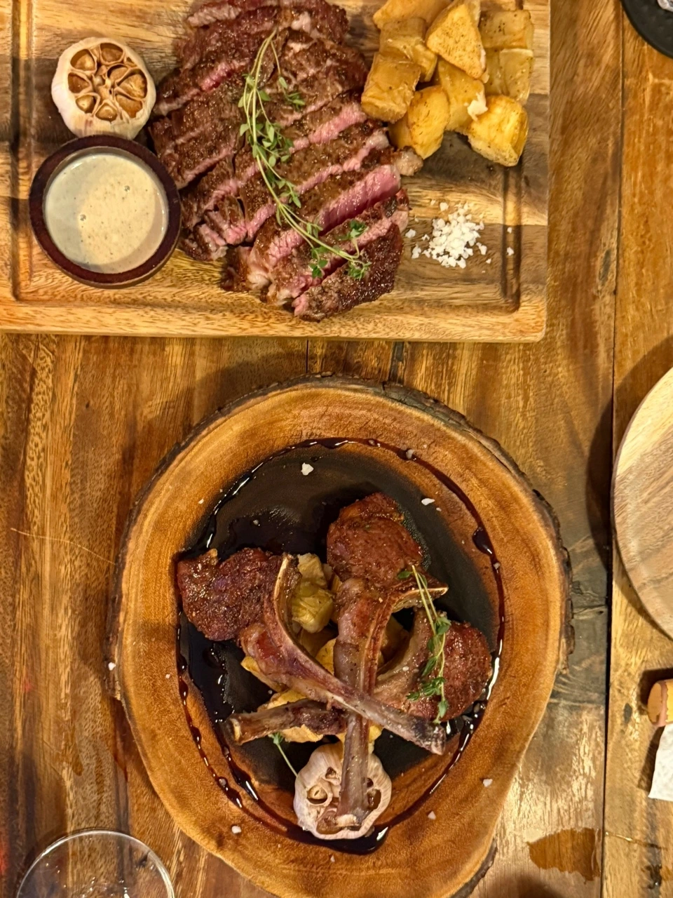 스테이크, 양갈비, 참치 타다키, 와인까지.
