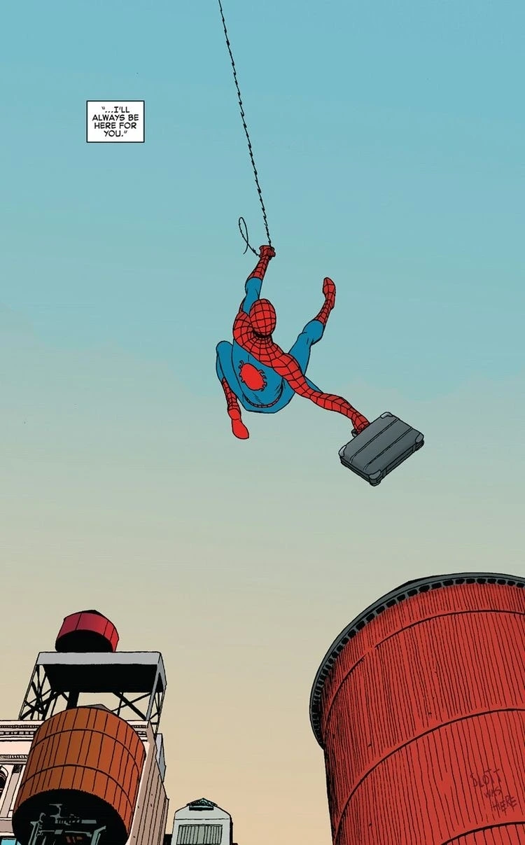 이제 피터는 더 이상 토니가 만들어준 첨단 슈트를 입지 않고, 재봉틀로 슈트를 직접 만들어 입습니다. 그 슈트는 역시나 클래식 스파이더맨의 슈트를 많이 닮아 있지요. 이것은 자신의 날개로 토니의 둥지에서 날아 올라 진정으로 ‘독립’ 했다는 것을 뜻합니다. 더 이상 스타크 인더스트리의 기술력 없이 싸워나갈 피터의 슈트는 앞으로 헤지고 찢겨 나갈 날이 많을 것입니다. 돌아온 영웅 서사의 새로운 시작이 반가운 한편, 내심 미안한 마음과 여운이 이리도 오래 남는 것은, 누군가의 도움 없이 가난하게, 외롭게 살아갈 피터의 앞날을 우리는 이미 잘 알고 있기 때문일 것입니다. 그럼에도 조그만 책상 위에 무전기를 두고, 곤란에 빠진 이들을 돕고자 기꺼이 창 밖을 나서는 피터— 그의 발걸음에 많은 위안을 얻는 것은, 이것이 바로 우리 모두가 사랑하는 다정한 이웃, 스파이더맨의 이야기이니까요.