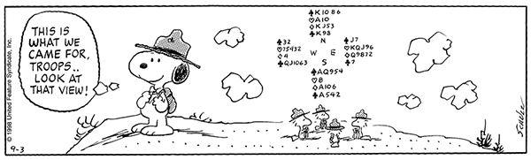 “테이블에 앉아 카드를 한 장 한 장 구별할 수만 있으면 브리지 플레이는 가능하다. 다시 말해서 스포츠, 사랑, 야망, 이 모든 것이 실패해도 브리지는 당신 곁에 남아 위안과 즐거움을 줄 것이다 (You can play bridge as long as you can sit up at a table and tell one card from another. In fact, when all else fails - sports, love and ambition - bridge remain a solace and an entertainment)”