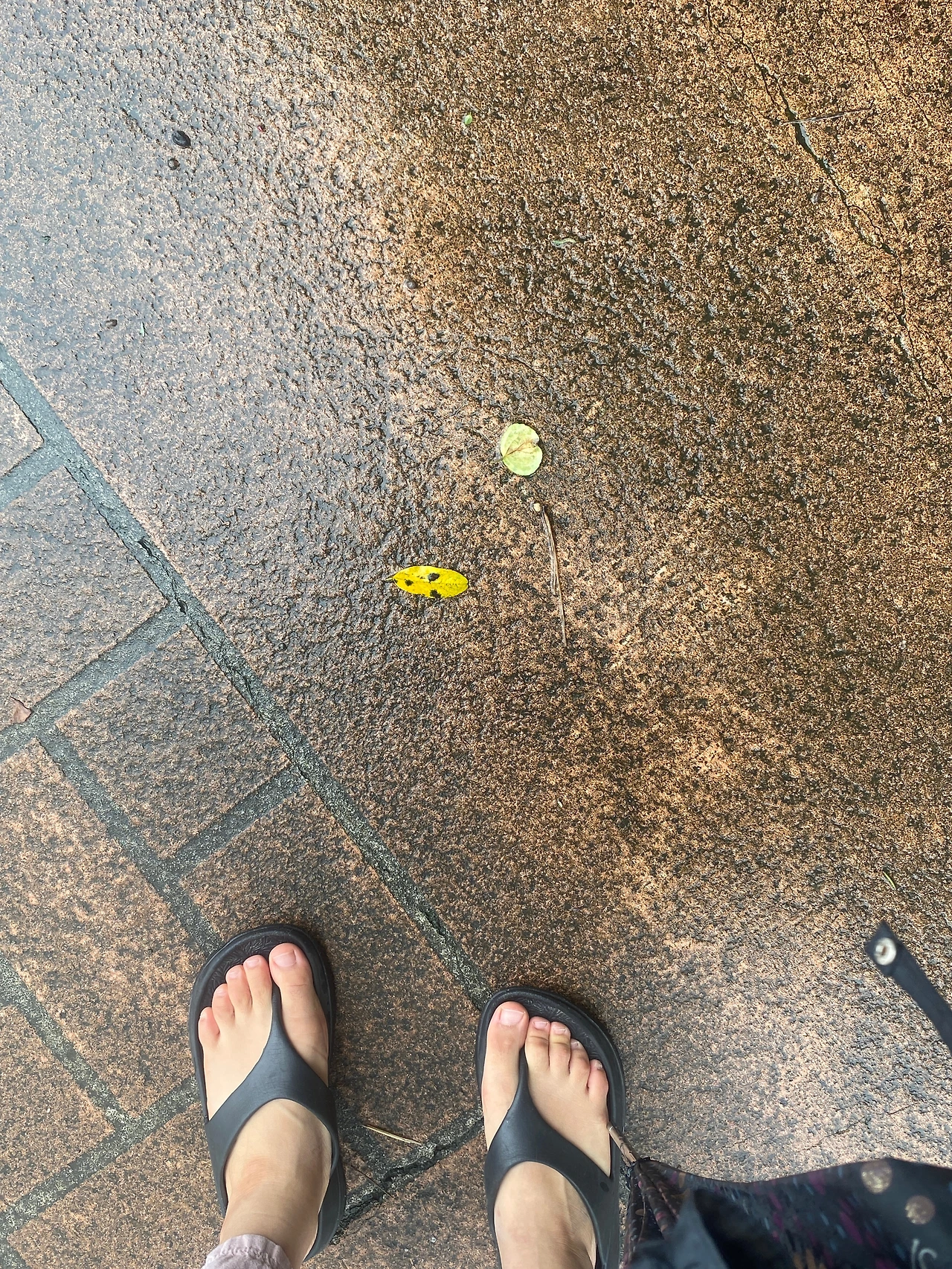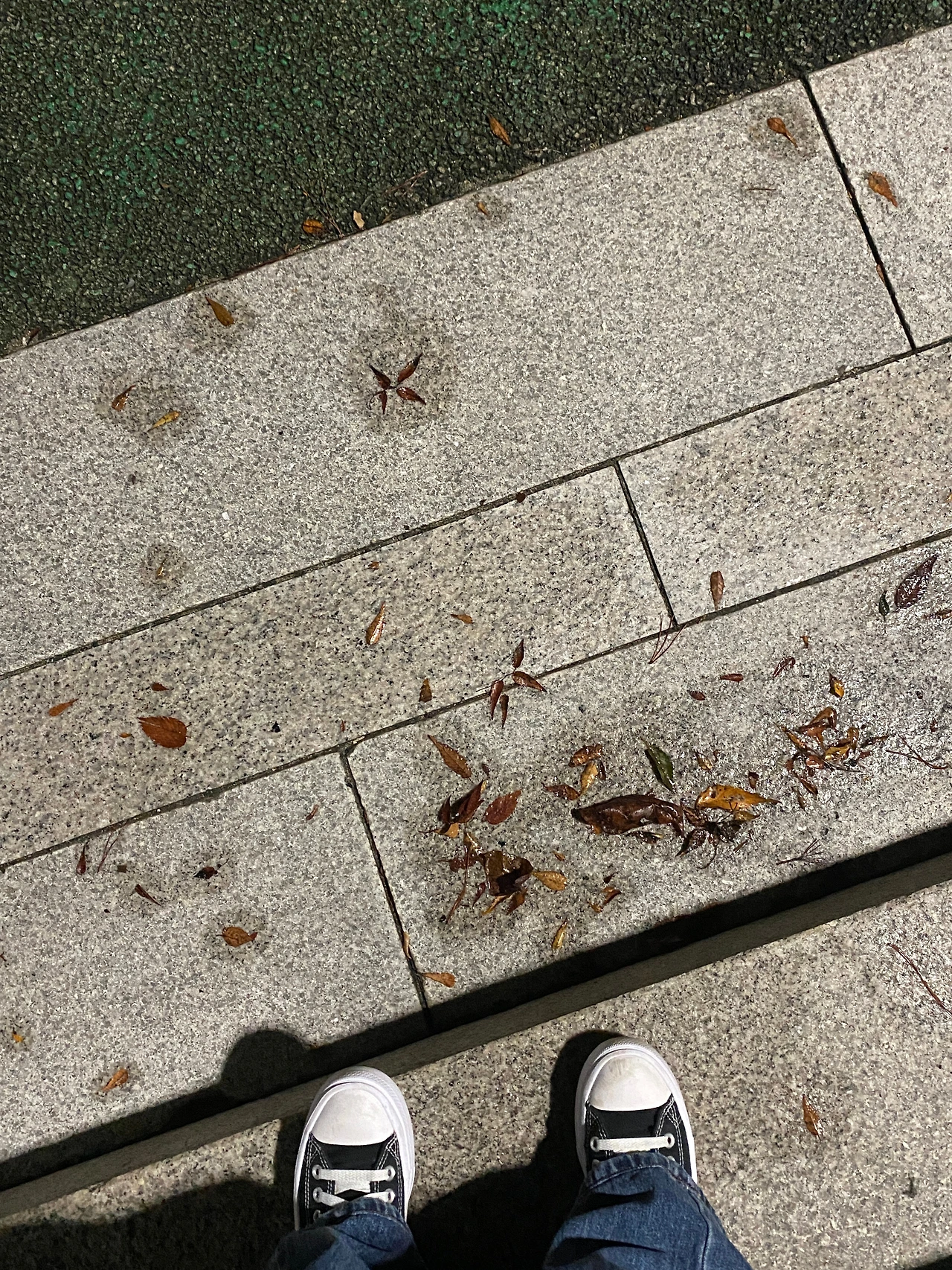 어제는 수업이 끝나고 내려오는 계단에서 기다리고 있는 이를 잠깐 잊고 육성으로 ”우와! 진짜 예쁘다!“ 했다! 비와 나뭇잎, 바닥이 만나 어우러진 풍경.