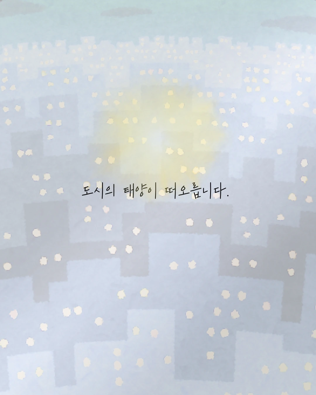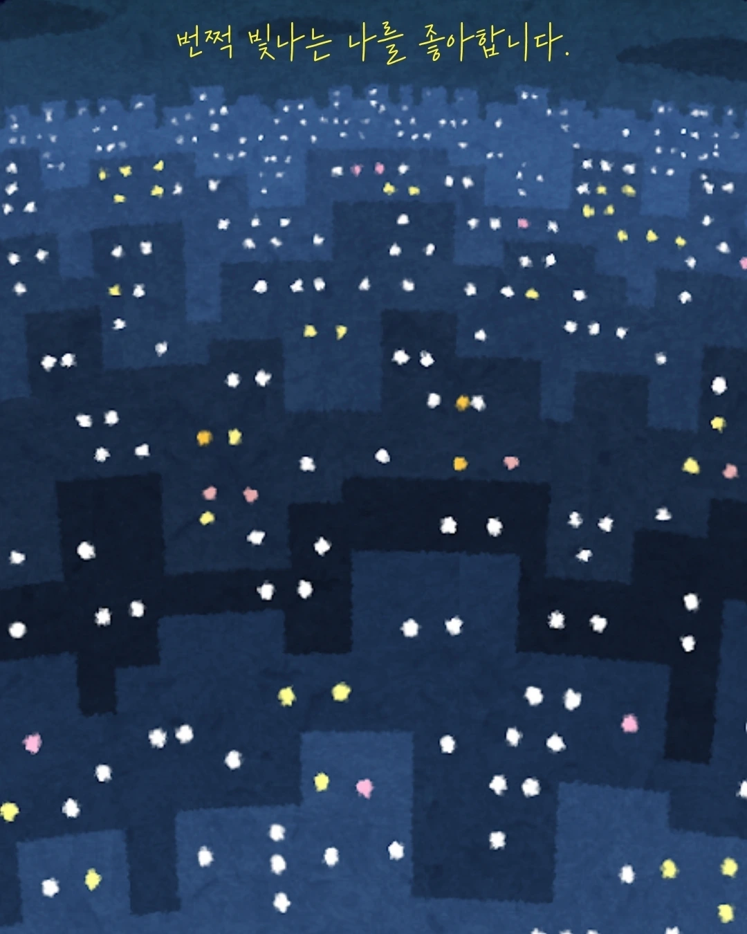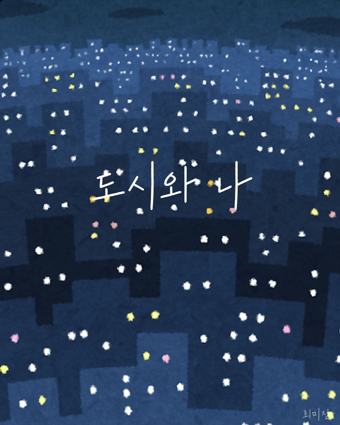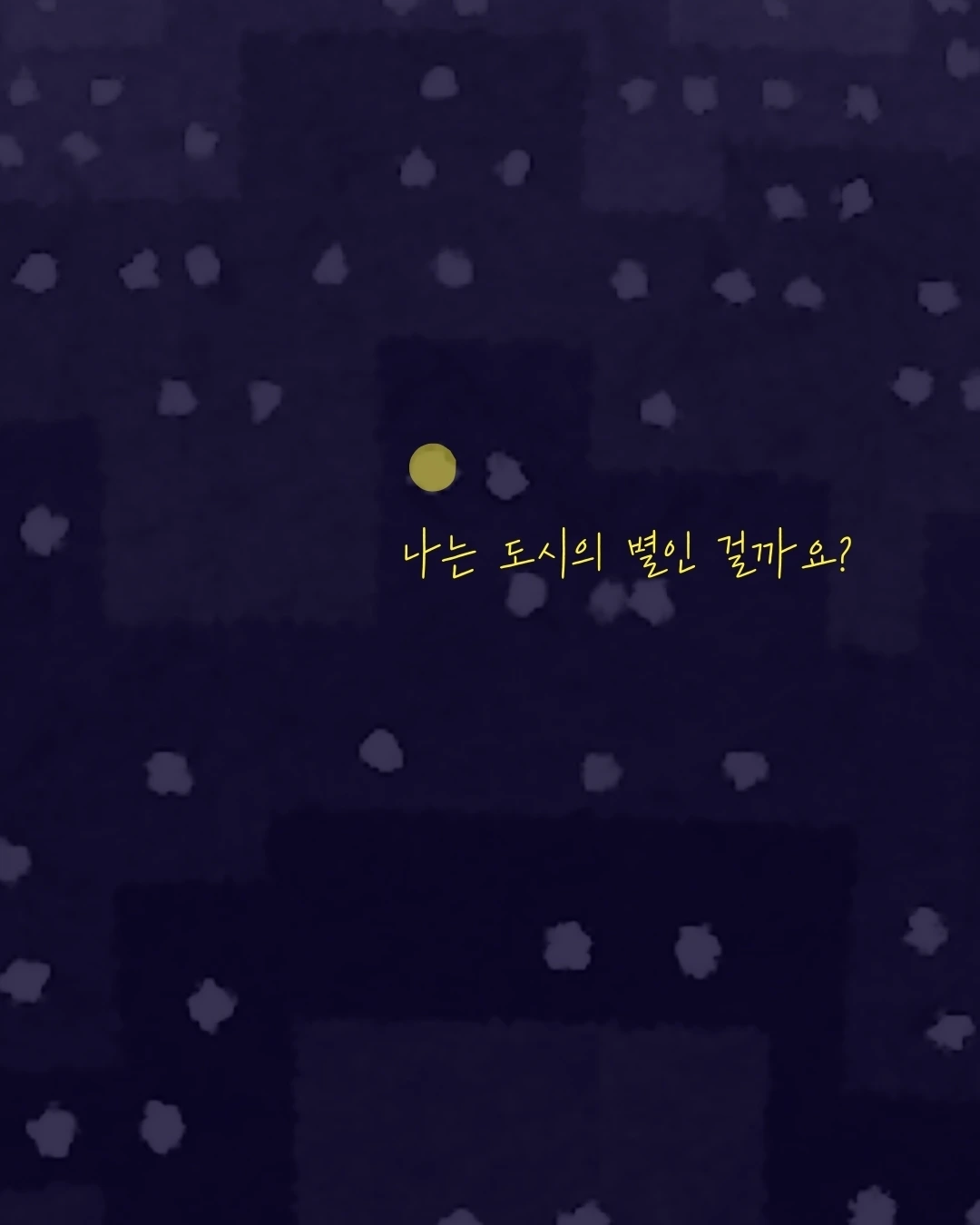 도시하면 반짝하는 불빛이 떠오릅니다. 시골로 갈수록 원초적인 깜깜한 하늘과 별을 더 잘 만날 수 있는 반면, 도시에서는 불빛이 별빛이자 사람들을 안내하는 가이드가 됩니다. 밤늦게까지도 반짝 번쩍거리는 도시의 불빛은 별을 보며 어떤 생각을 하고 어떤 마음을 가질까요? 별빛이 되고 싶을지도 모르는 도시의 불빛은 어떤 이야기를 전해줄까요? 불빛 자신의 존재를 확인시키는 도시에서의 생활을 그려봅니다.