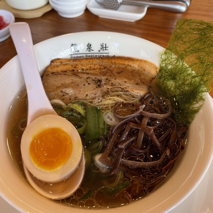 다음으로 류센소 아사리 소유라멘을 맛보았다. 고명에 감태 김한장이 들어가 있어서 약간은 색달랐다. 얇게 비치는 감태의 모습이 섹시하게 보이기도 했다. 국물을 떠먹어보았는데 돈코츠 라멘보다는 약한 느낌이었지만 이 국물도 간이 꽉꽉 차있었다. 소금을 조금만 더 넣으면 짠맛이 강하게 느껴질 것 같았다. 하지만 확실히 돈코츠 라멘보다는 느끼한 맛이 덜했다. 돈코츠 라멘에서는 아지타마고라고 불리는 반숙계란을 언급안했는데 기본적인 레시피에 잘 맞게 조리되어 속이 아주 촉촉한 것이 먹기에도 훌륭했다. 질 좋은 계란인지 아닌지는 모르겠으나 필자의 입에는 노른자의 비린내는 거의 나지 않았다. 면은 돈코츠 라멘과 동일하였다.