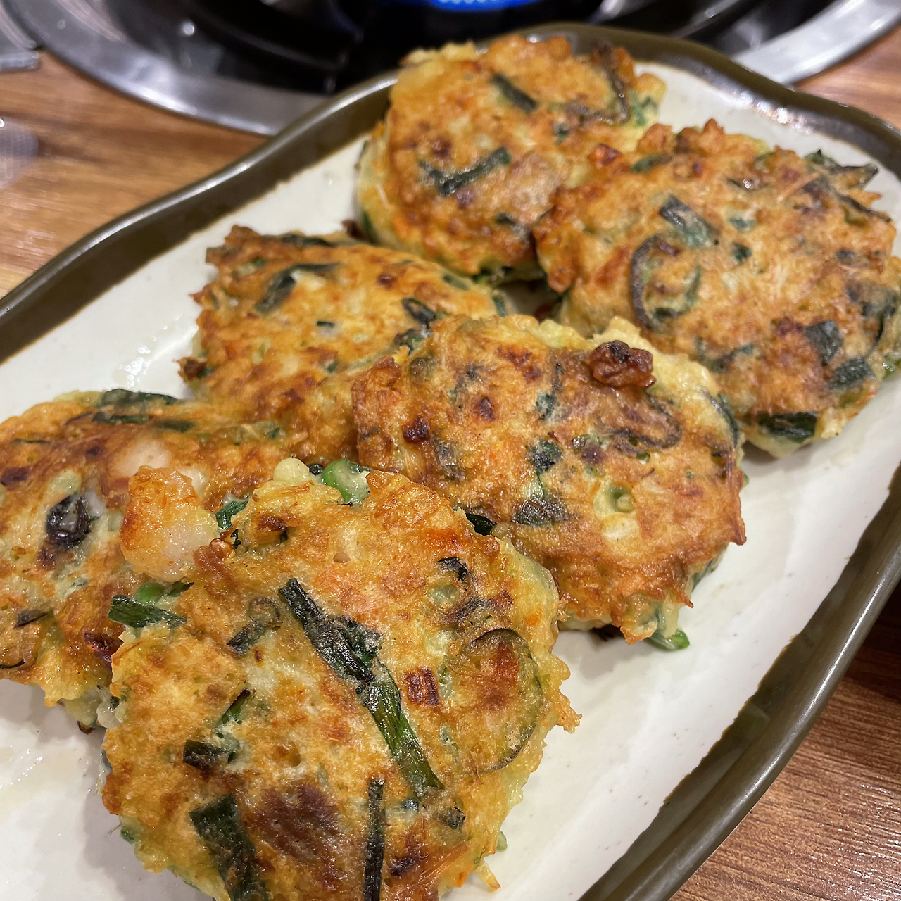 다음으로 굴 전을 먹어보았는데, 이건 전보다는 거의 경단에 가까웠다. 어찌나 두툼한지 먹기 부담스럽지 않을까 걱정이 되었는데 하나 먹어보니 걱정이 싹 사라졌다. 일단 두꺼운 외형에 비해서 부드럽고 촉촉해서 입안에서 잘 씹히고 목 넘김도 수월했다. 겉바속촉이라는 말로 표현이 끝날 정도였다. 앞서 언급한 것처럼 워낙 대량으로 만들어내니 아기자기 세밀하게 개성 있는 맛은 찾아보기 힘들었지만 먹어보면 맛있을 수밖에 없는 맛이었다. 특히 굴 전을 워낙 튼실해서 양이 부족하지 않을까 걱정을 싹 사라지게 하는 심리적으로 안정감을 주는 요리였다. 식사 마지막까지 야금야금 먹어서 결국 남김없이 다 먹었다.