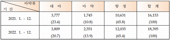 작년 한 해 동안 국내 마약류 사범 단속 누계는 총 18,395명으로, 적지 않은 숫자라고 본다.