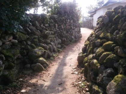 조금씩 길을 좁히고 있는 돌담을